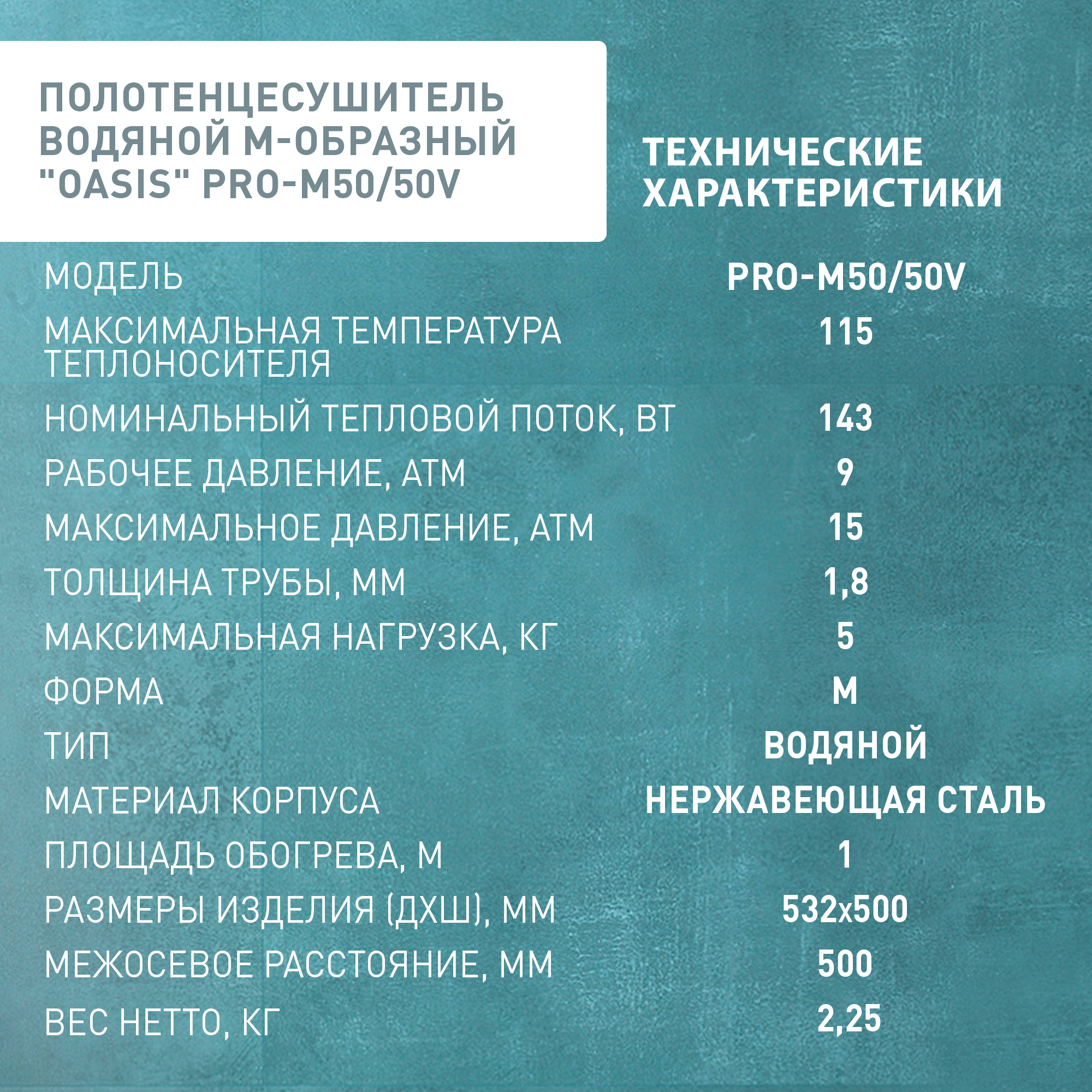 Полотенцесушитель водяной М-образный "Oasis" PRO-M50/50V интересное: