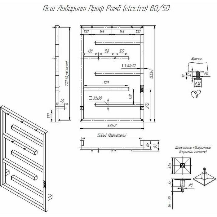 Полотенцесушитель электрический Альтасан Лабиринт Проф 80х50 Черный муар интересное: