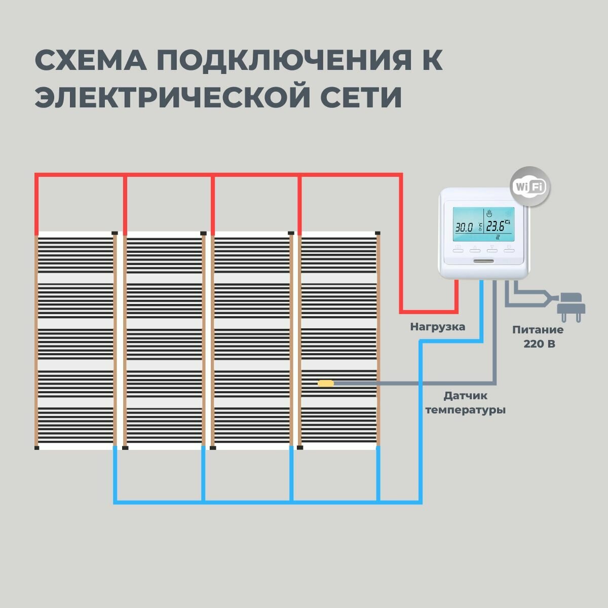 Пленочный теплый пол 9 м.п. комплект ширина 80см с Wi-Fi терморегулятором