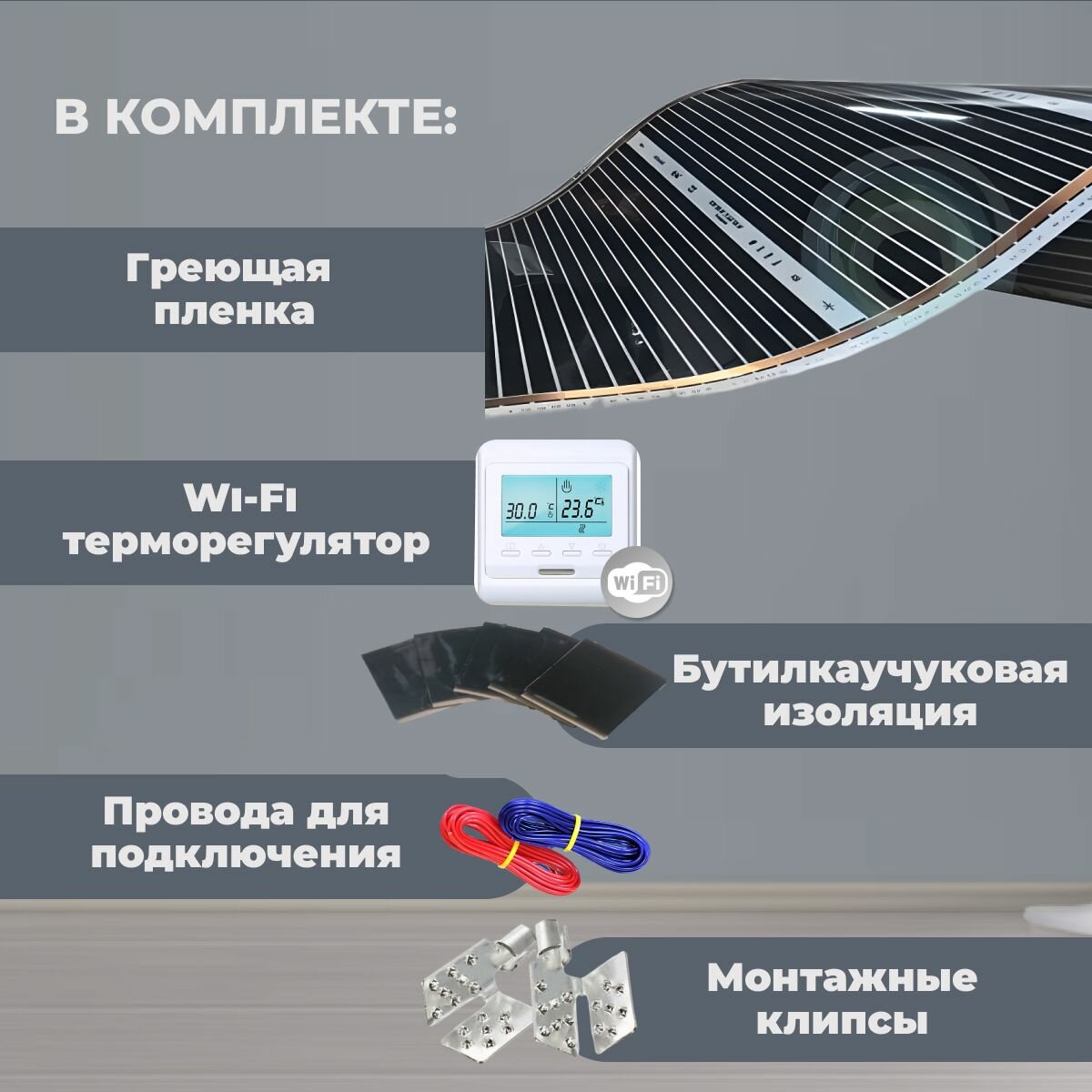 Пленочный теплый пол 15 м.п. комплект ширина 80см с Wi-Fi терморегулятором
