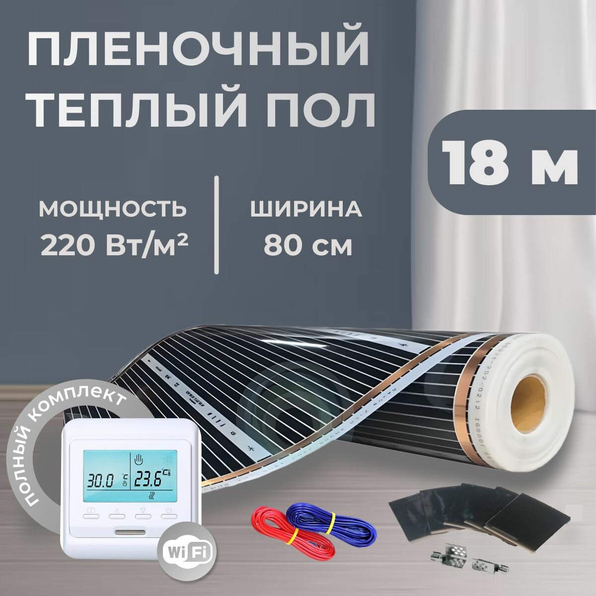 Пленочный теплый пол 18 м.п. комплект ширина 80см с Wi-Fi терморегулятором