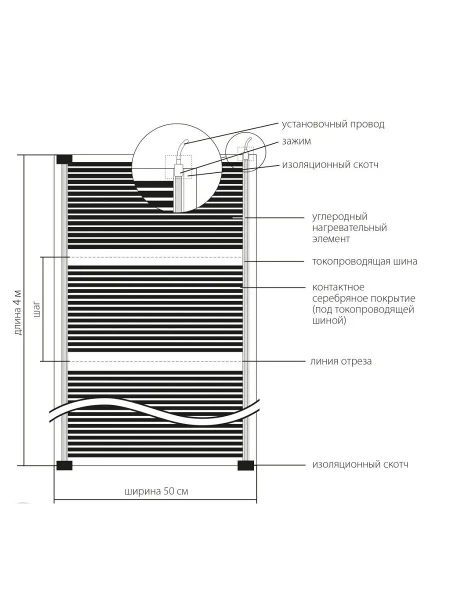 Инфракрасный тёплый пол SLIM HEAT 220Вт/м2-0,5м - 6м2