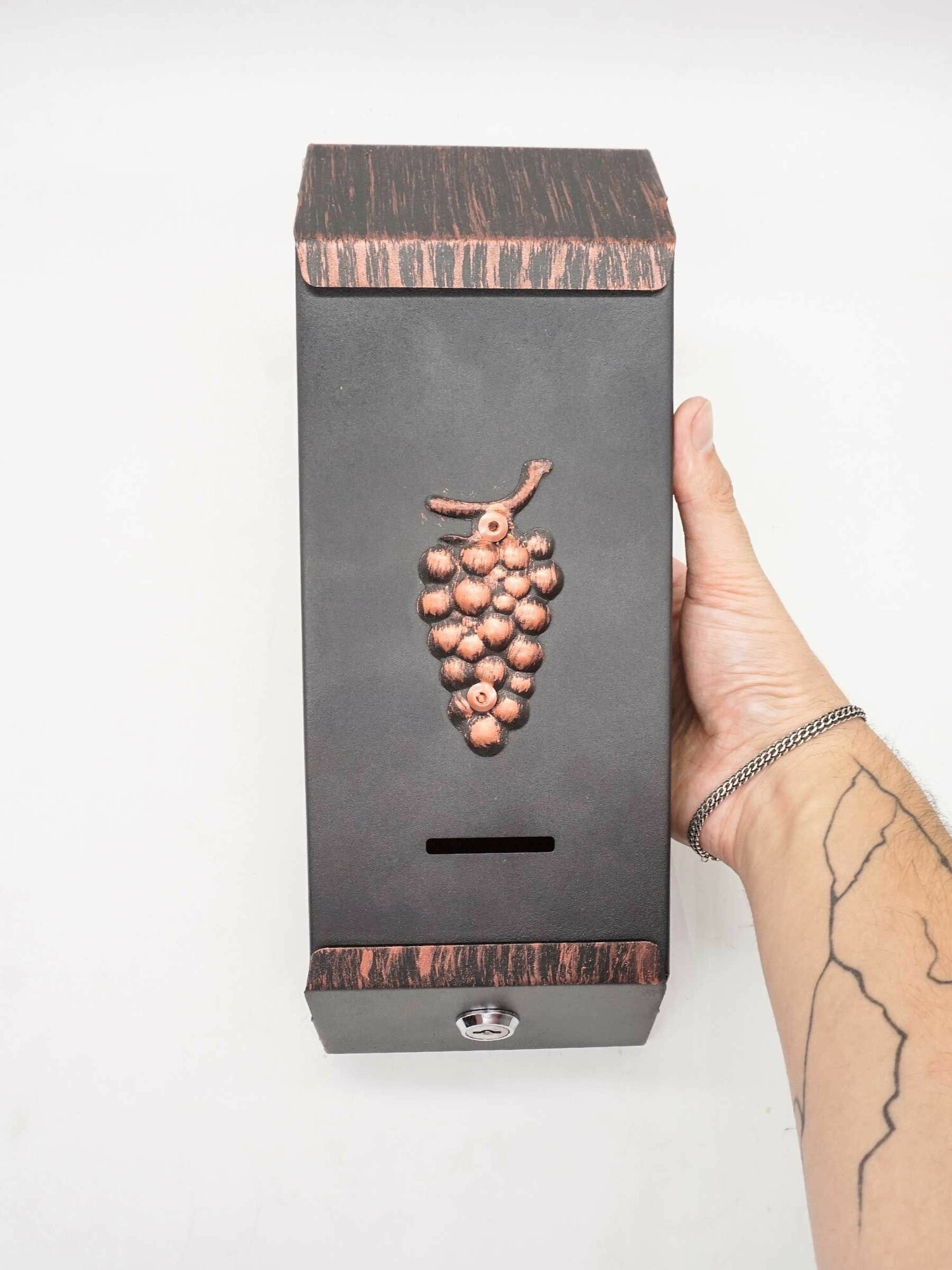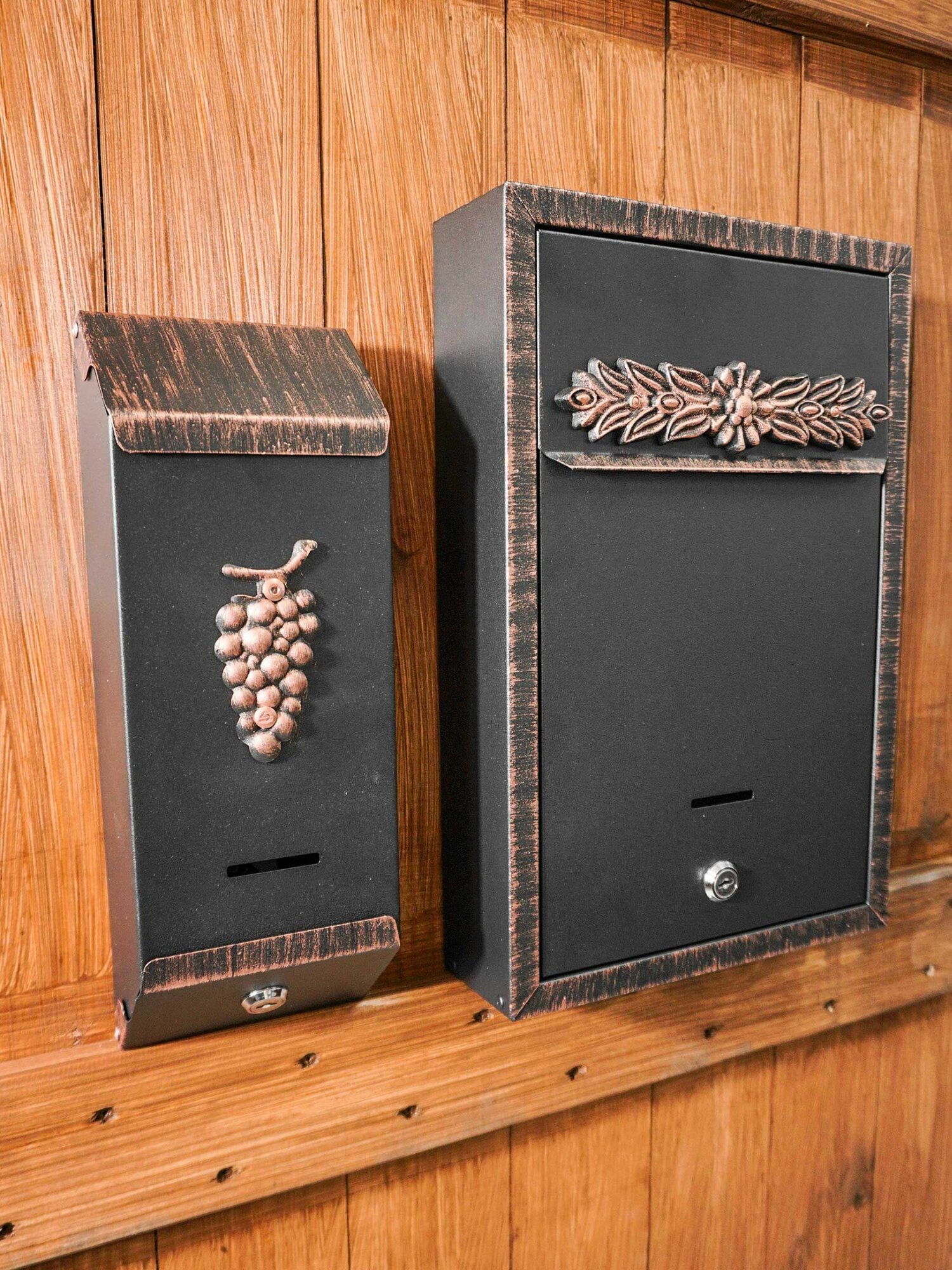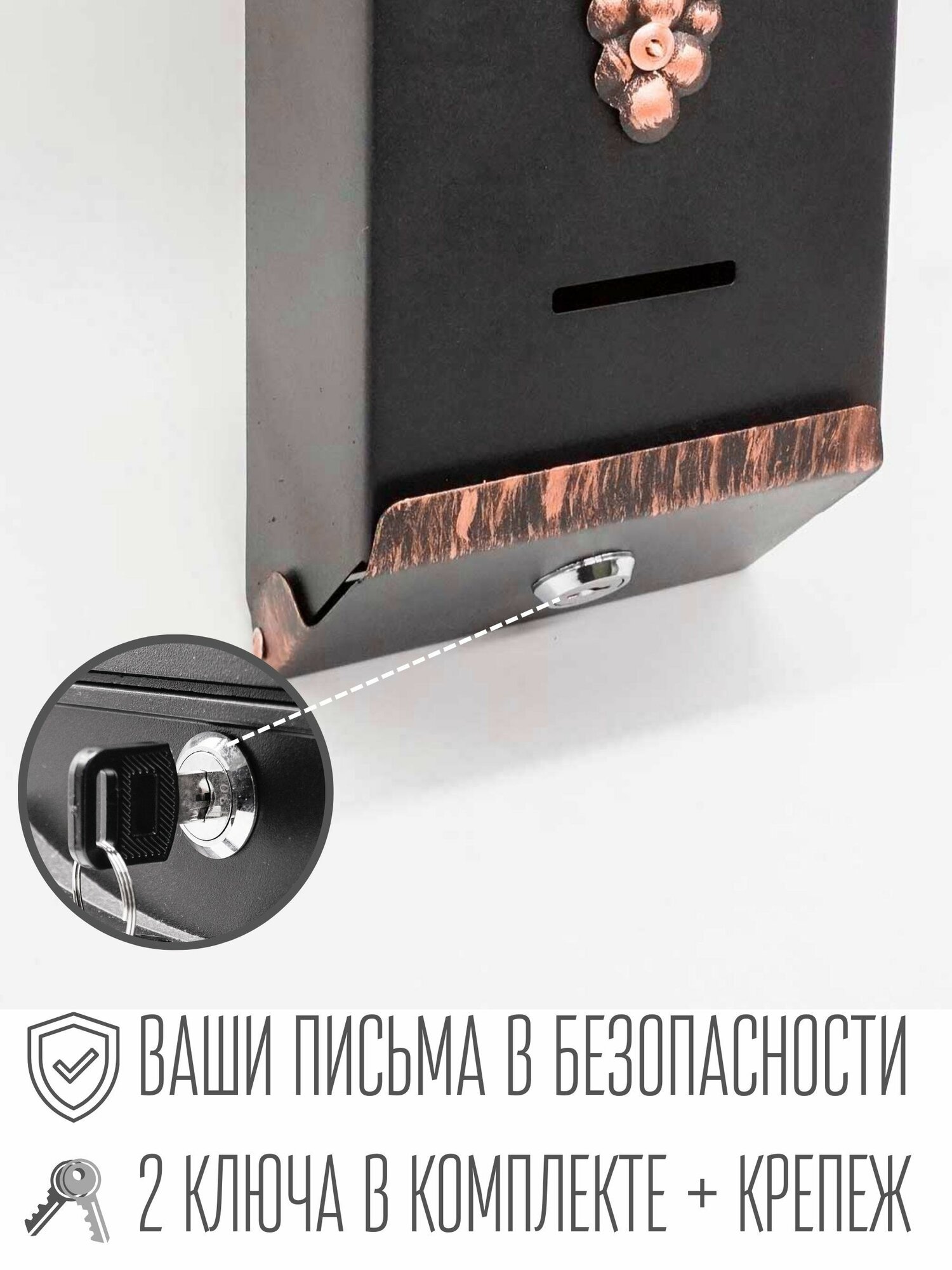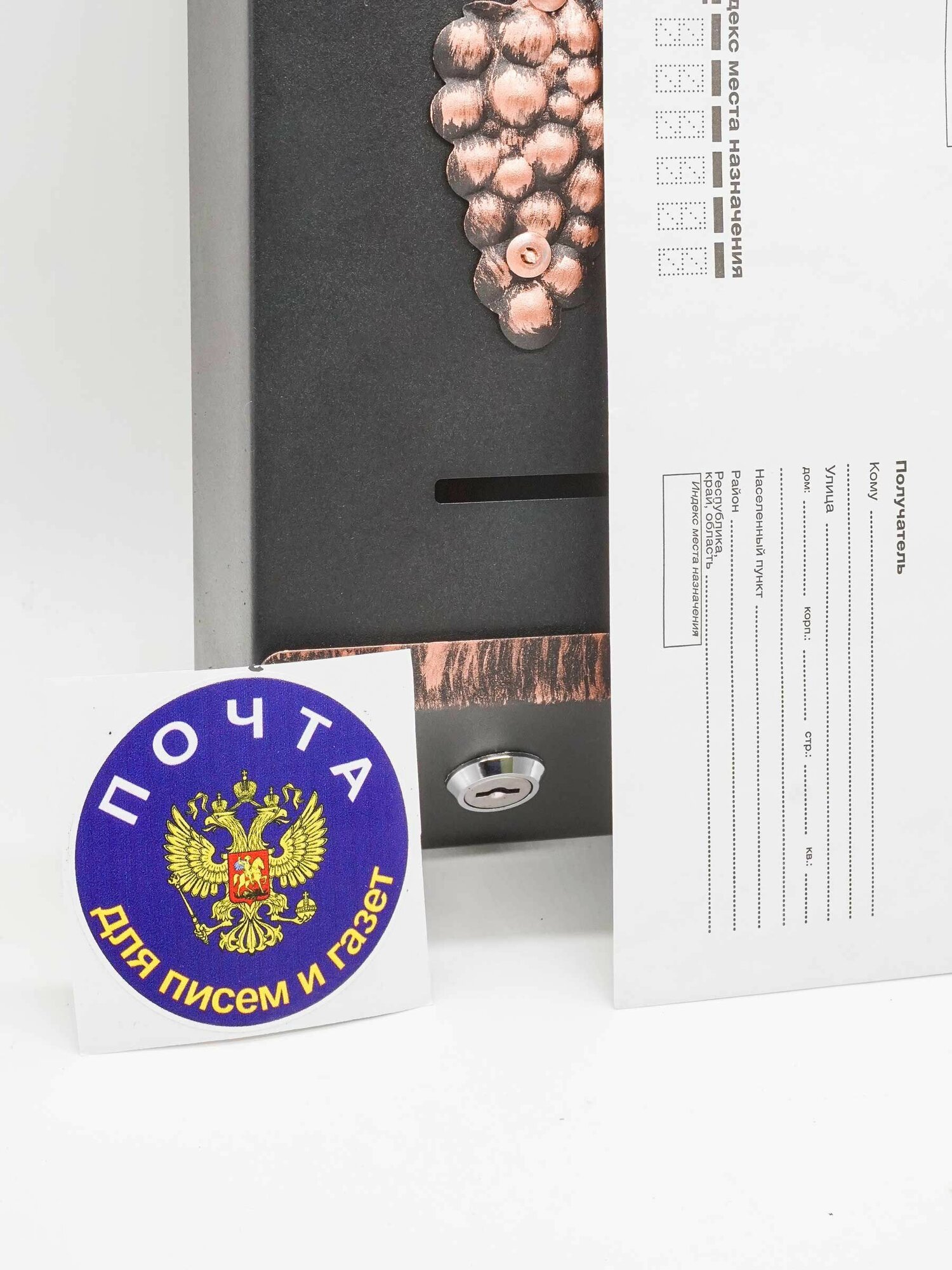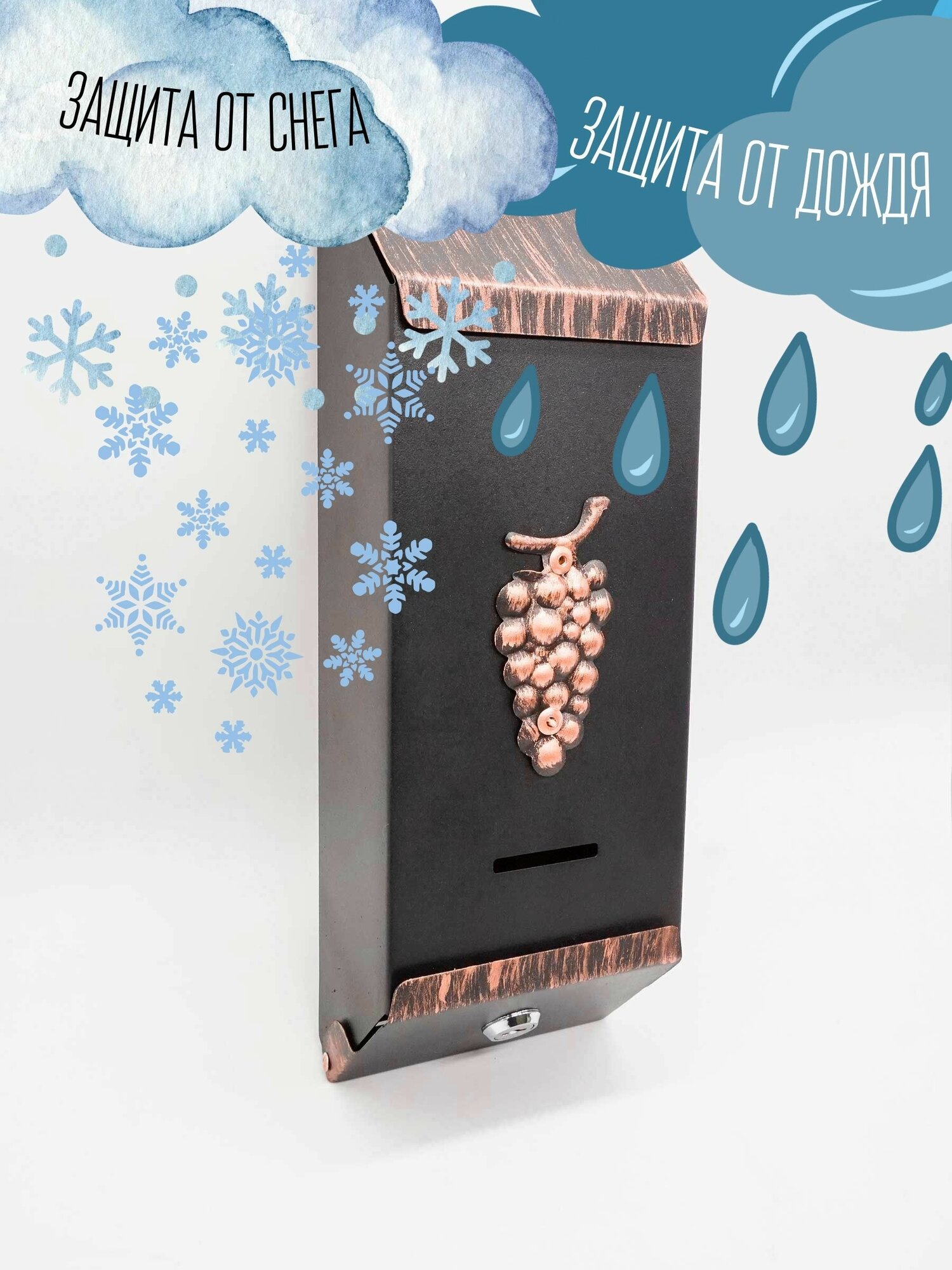 Ящик почтовый Агроснаб "Столбик виноград"/цвет: медный/для почты и писем/уличный ящик с ключом интересное: