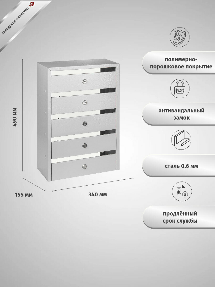 Почтовый ящик "Оптима Компакт" 5-секционный серый, без задней стенки, узкий для многоквартирных домов