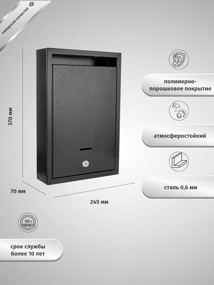 Почтовый ящик FerrumFormat альфа RAL 9005 с замком интересное: