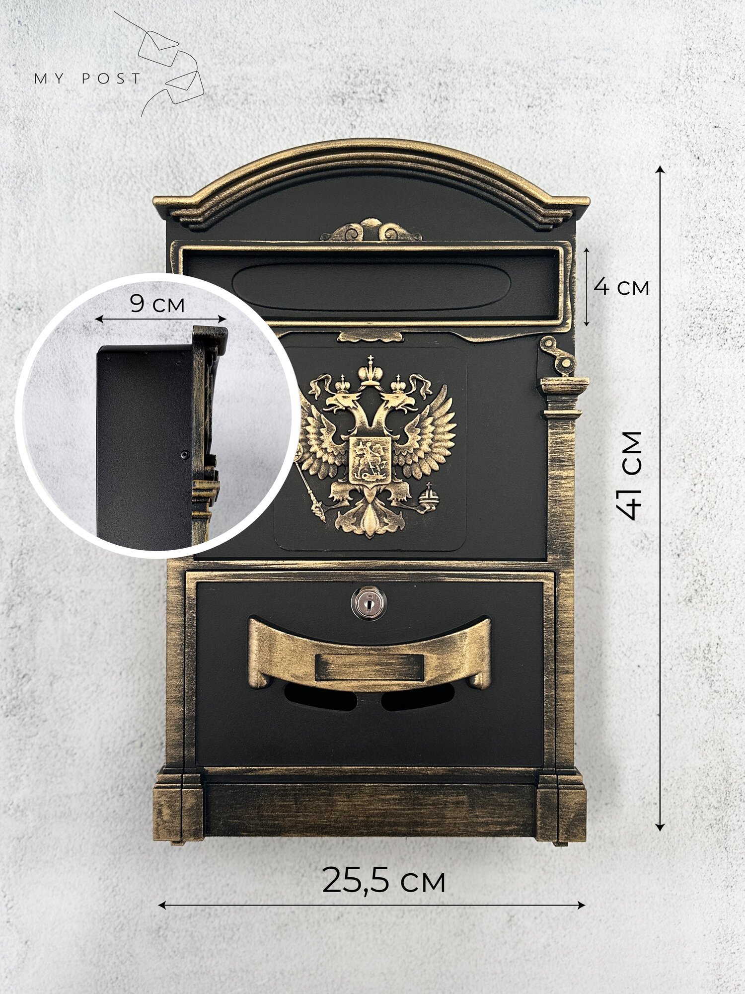 Металлический почтовый ящик уличный Патриот Черное Золото интересное: