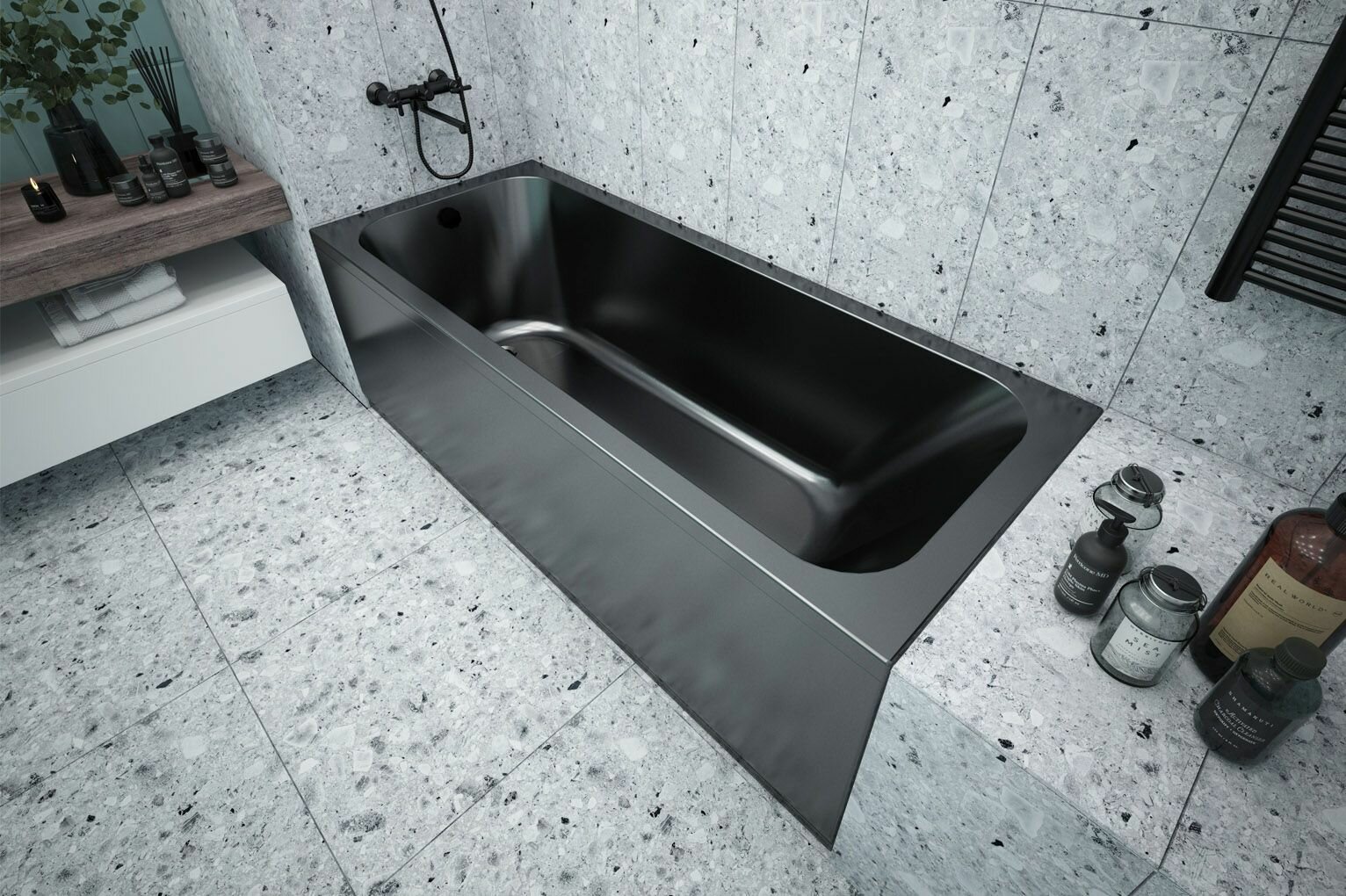 Купить Ванна акриловая черная в комплекте с каркасом STRICT BLACK 170х70