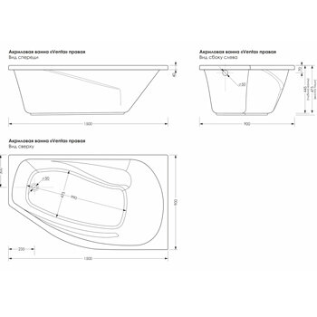 Ванна угловая акриловая в комплекте с каркасом 150*90 метакам VENTA правая интересное: