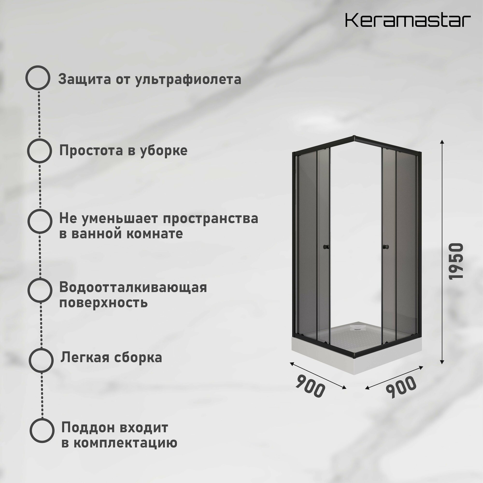 Душевой уголок 87,5х87,5x190 Keramastar Supra KR067011BP
