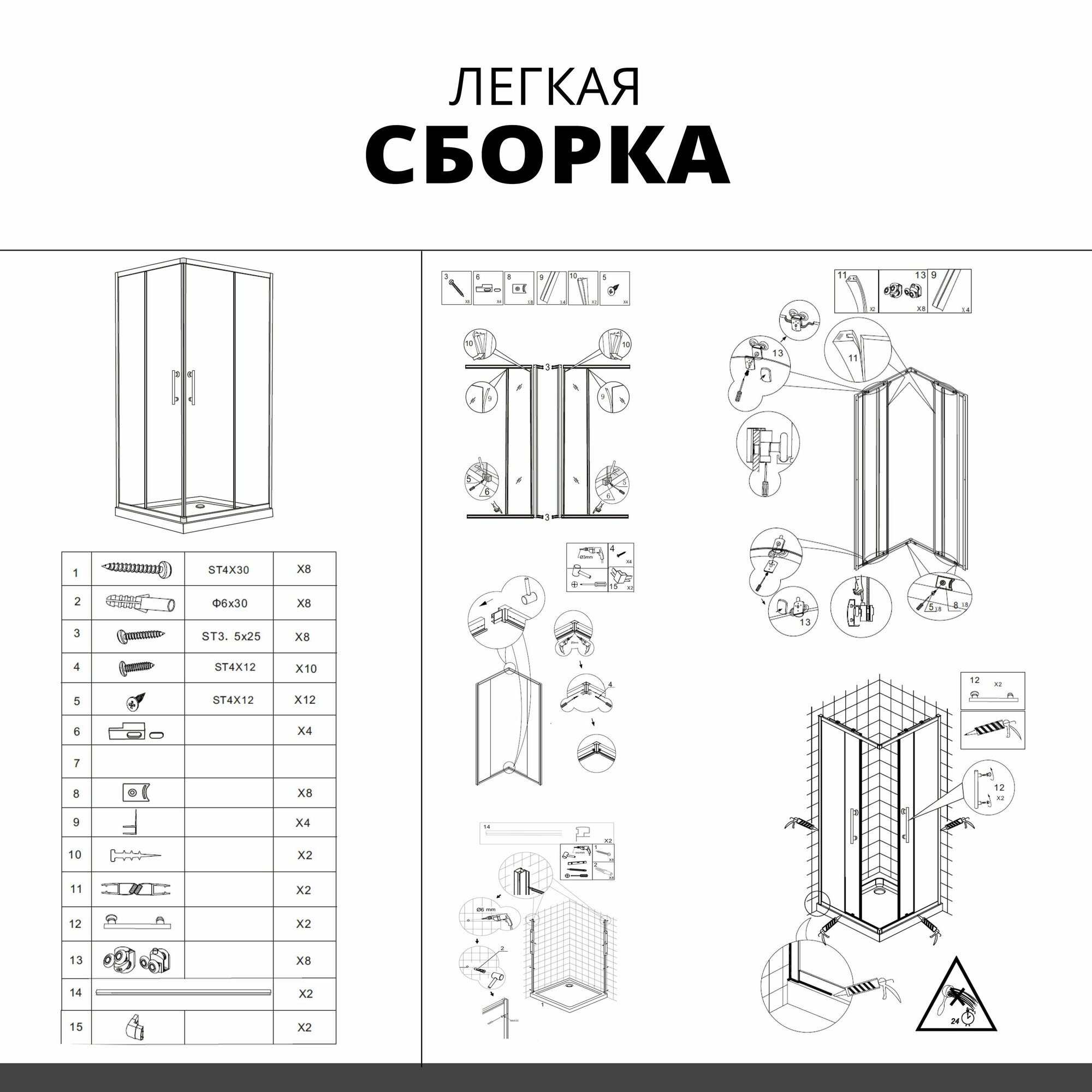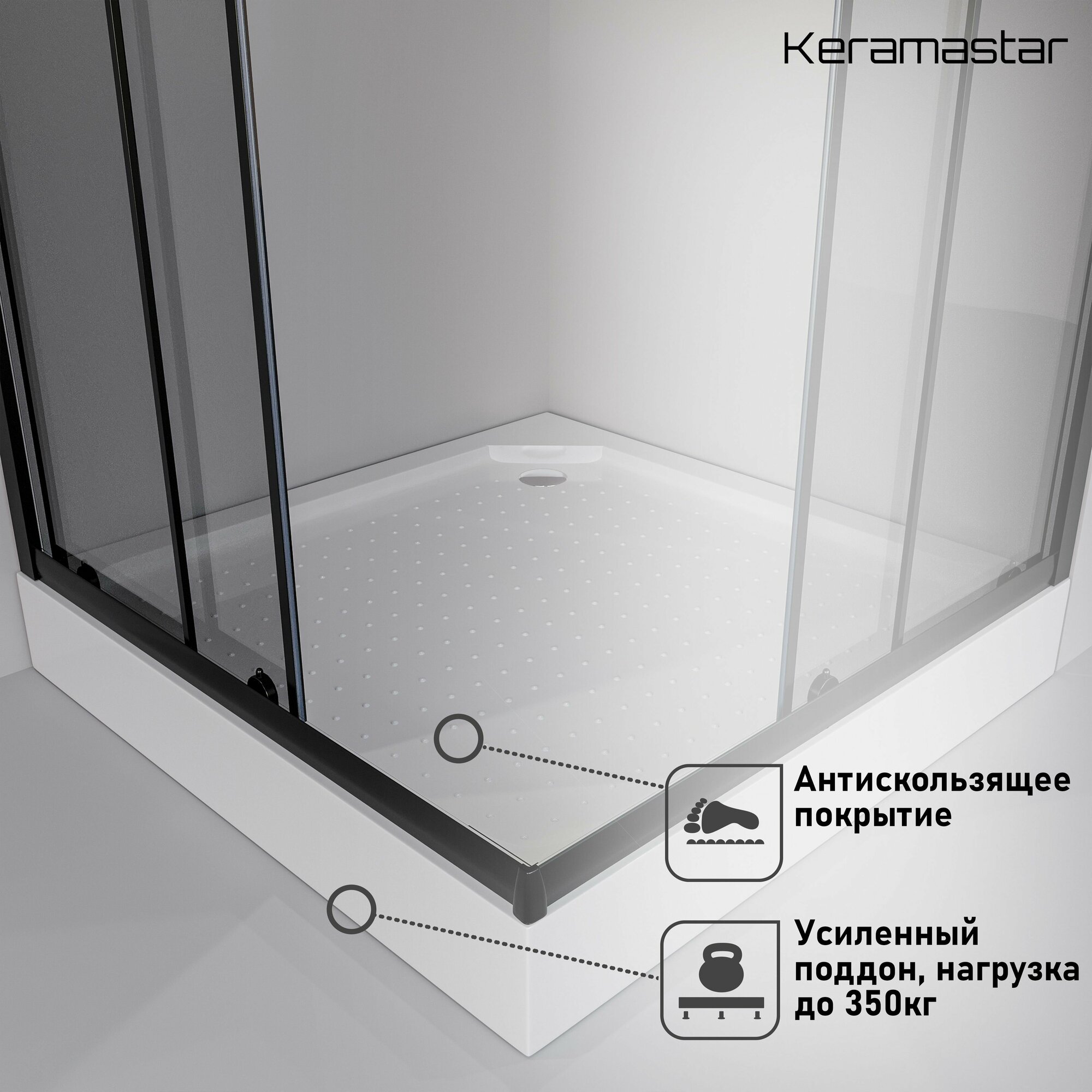Душевой уголок 80x80x203 Keramastar Supra KR067031 с низким поддоном, без крыши