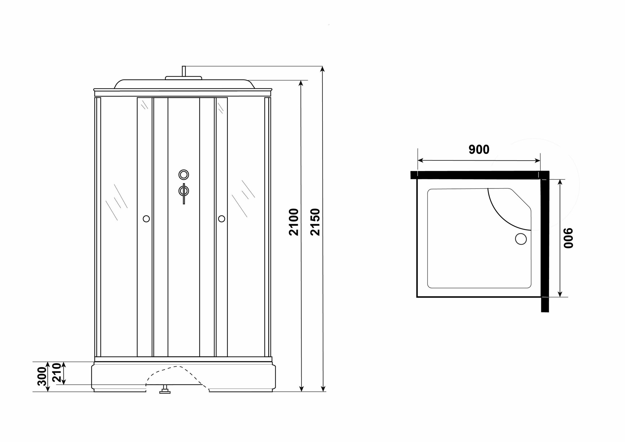 Душевая кабина ng-33984-14q (900х800х2150) средний поддон (26см) стекло матовое