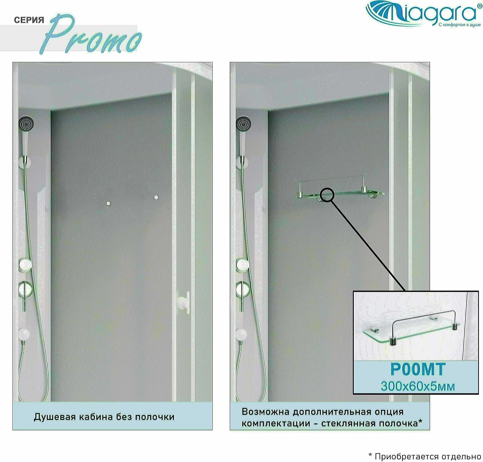 Душевая кабина Niagara Promo 80x80 P80/26Q/MT/BK поддон средний, стекло матовое, профиль белый интересное: