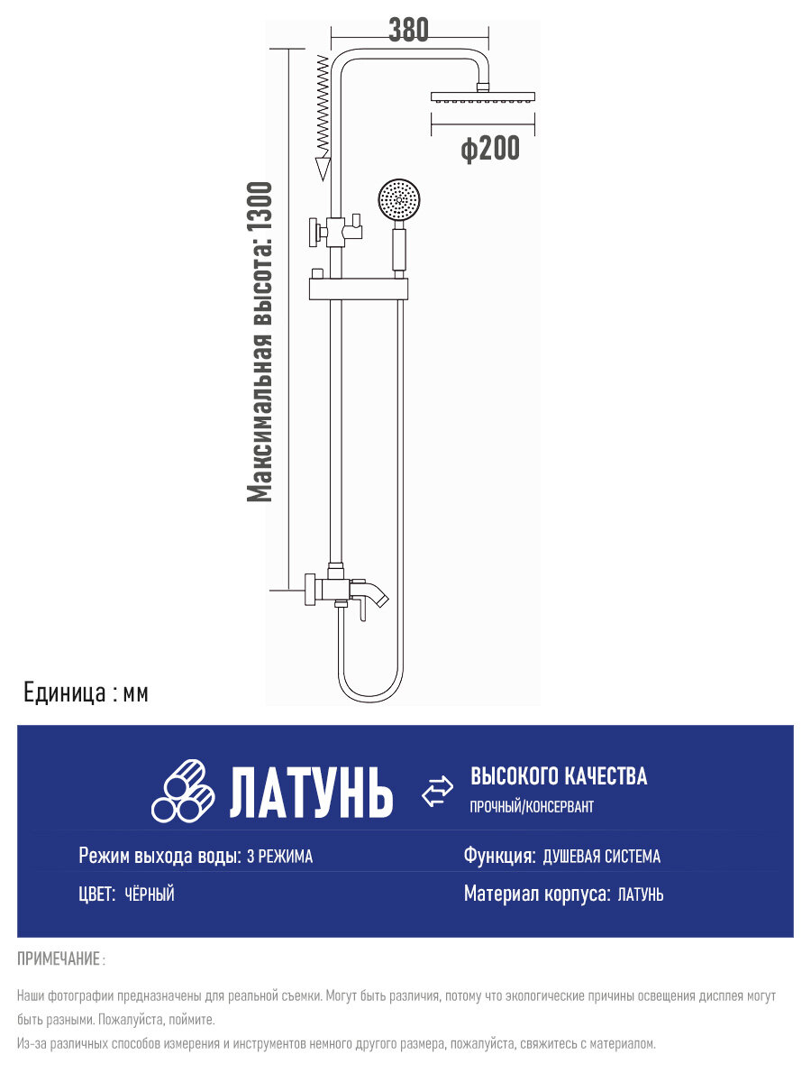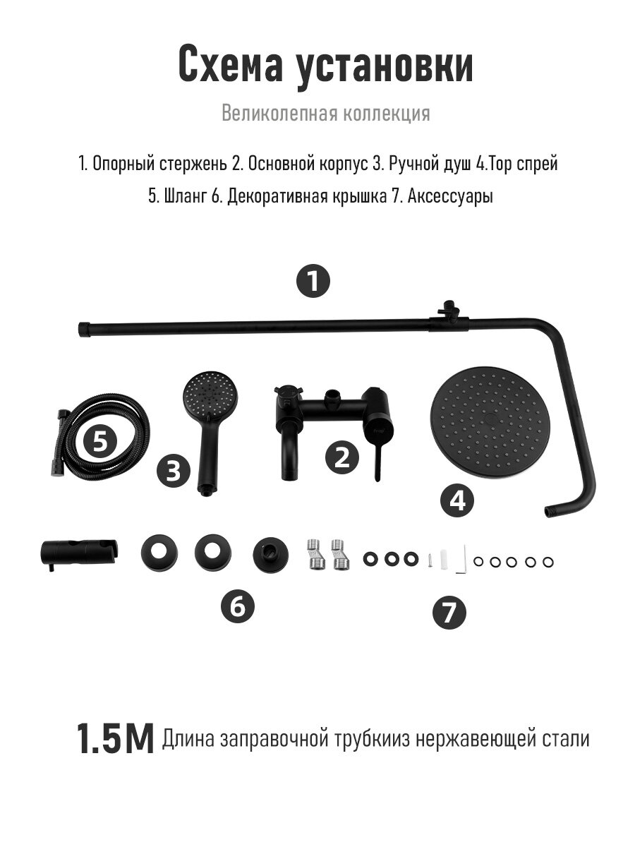 | Комплектация | верхний душ / ручной душ / Смеситель |