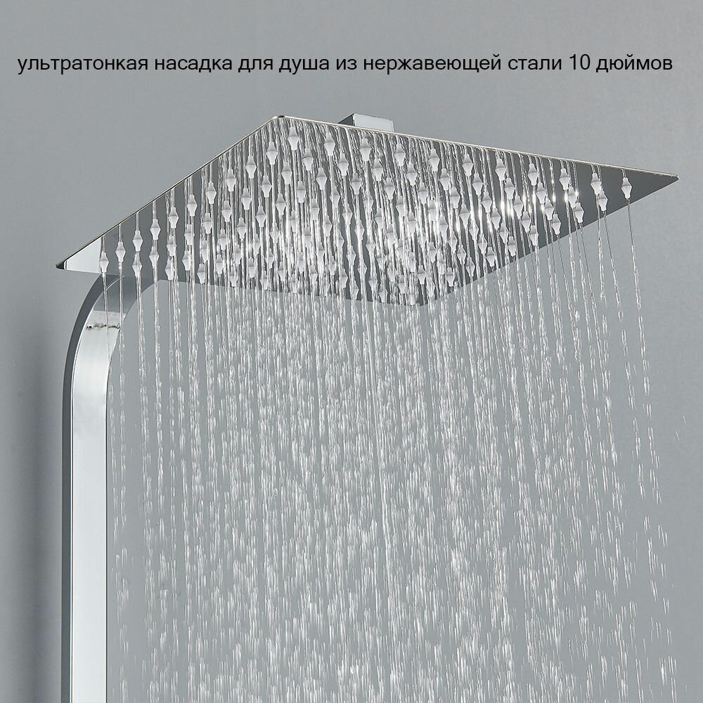 | Комплектация | верхний душ / душевая штанга / кронштейн для верхнего душа / лейка / переключатель потоков / Смеситель / шланг |