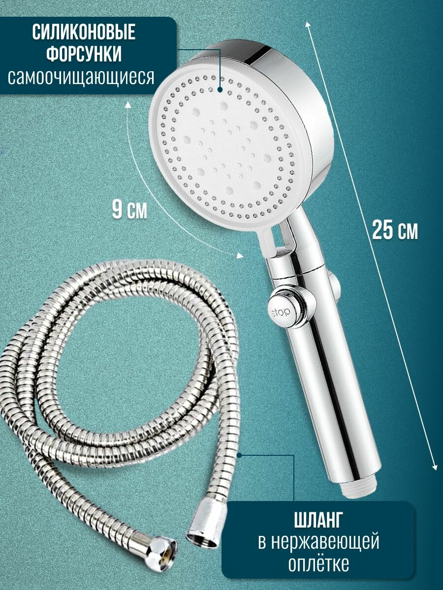Массажная лейка для душа с 5 режимами и шлангом длиной 1,5 м интересное: