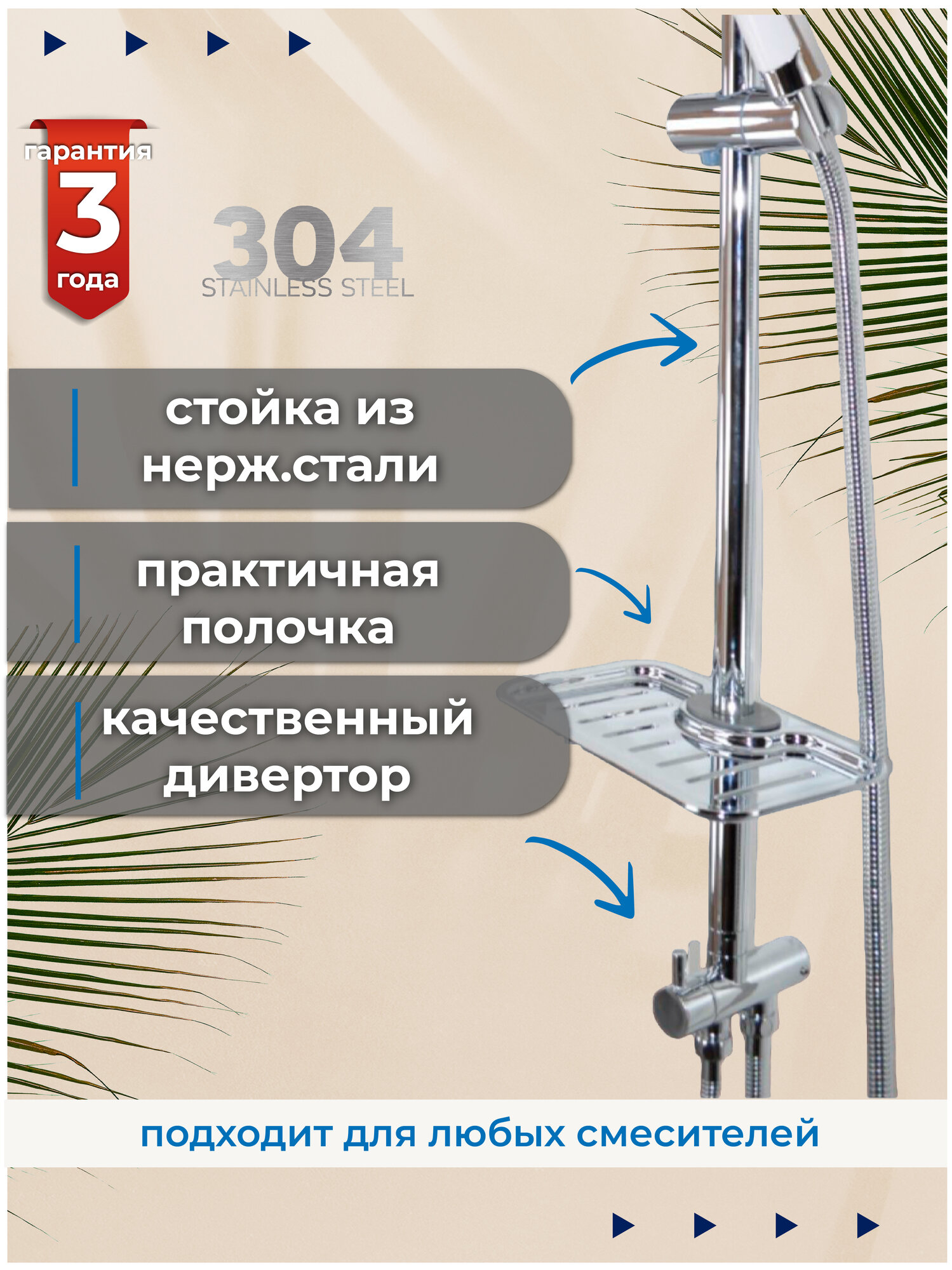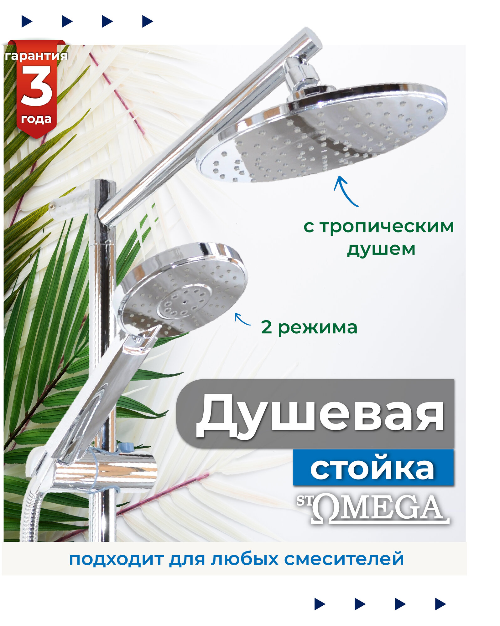 Душевая система StOmega 150 см, верхний душ, смеситель, 1 насадка, 3 режима, хром интересное: