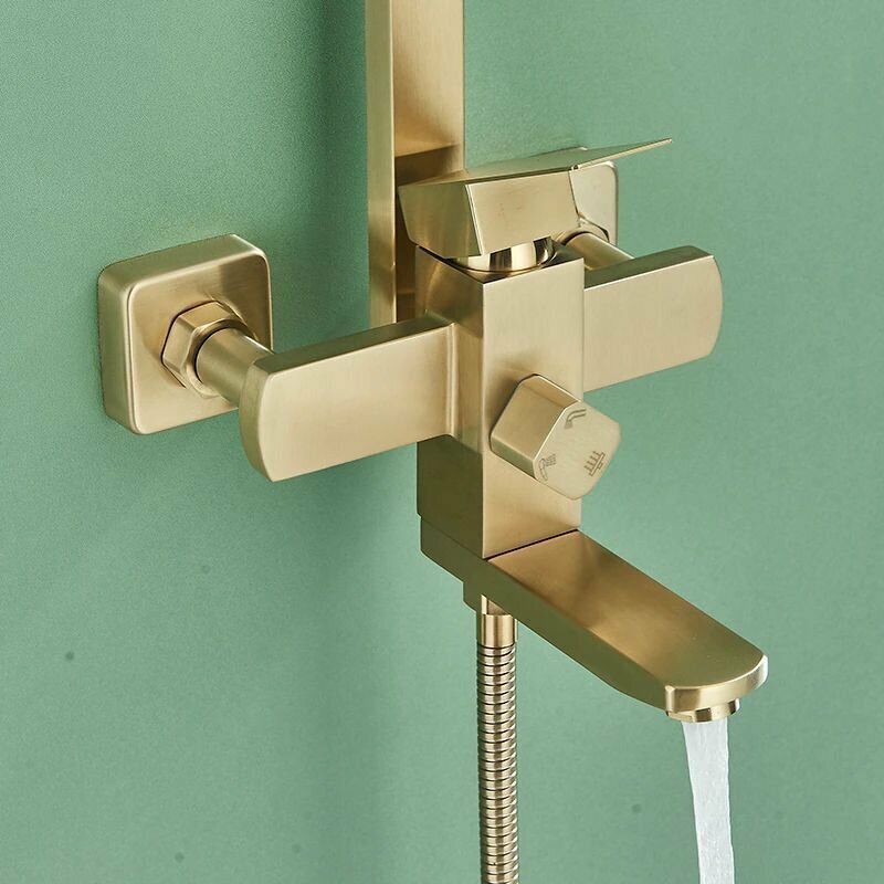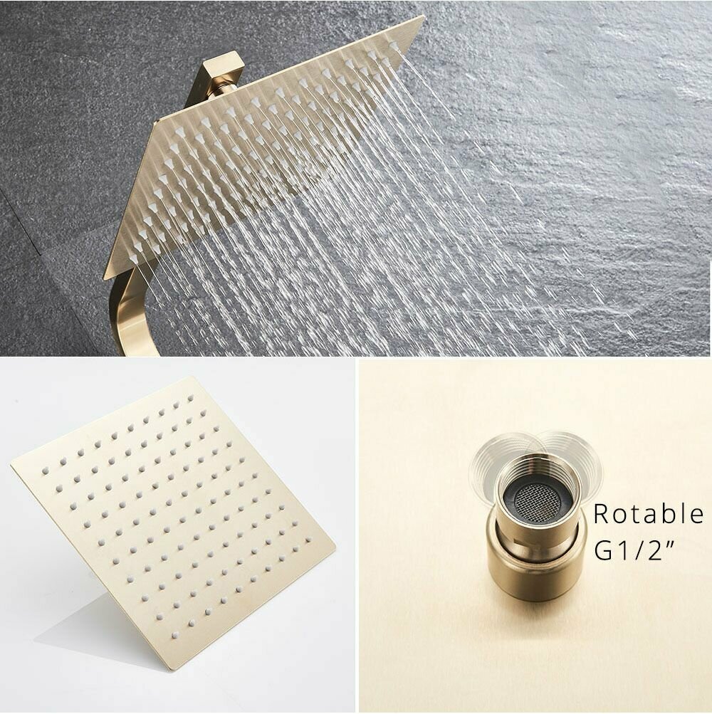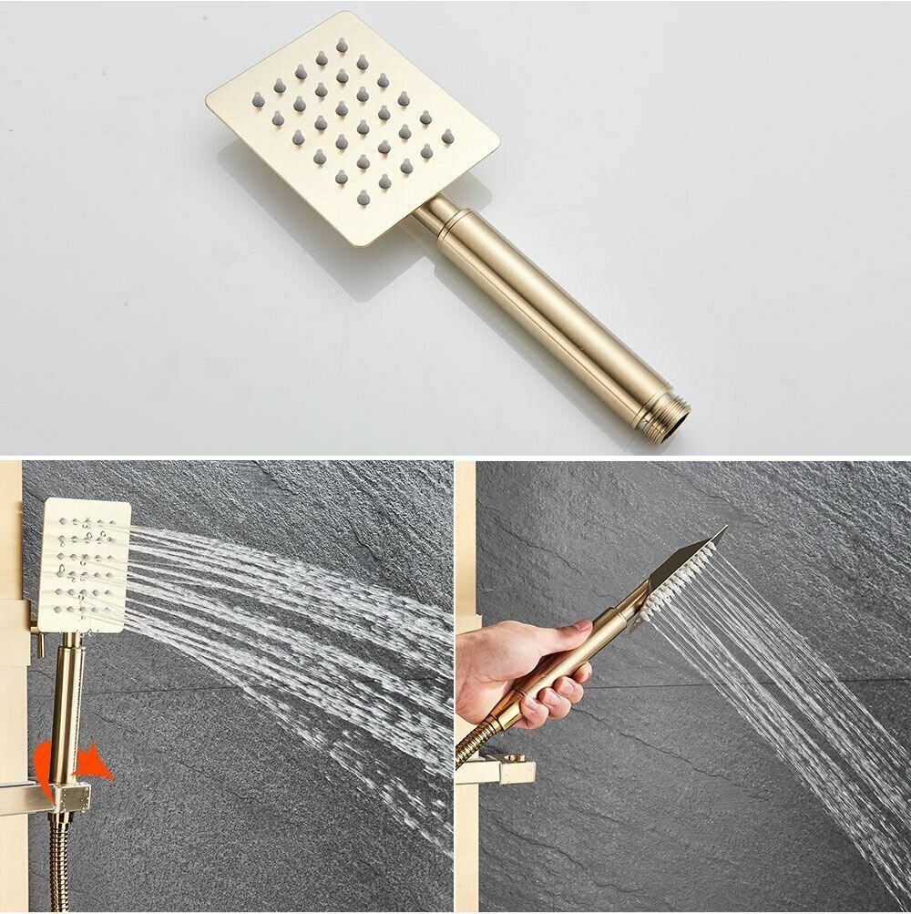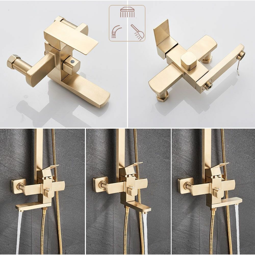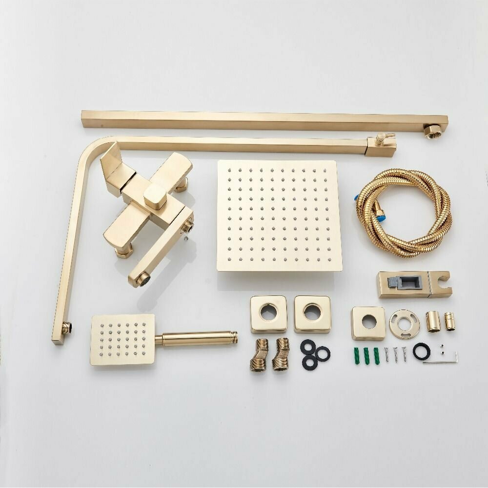 СохранитьДушевая стойка со смесителем гарнитур в ванную с тропическим душем Southlife. Душевая система матовое золото + смеситель для умывальника интересное: