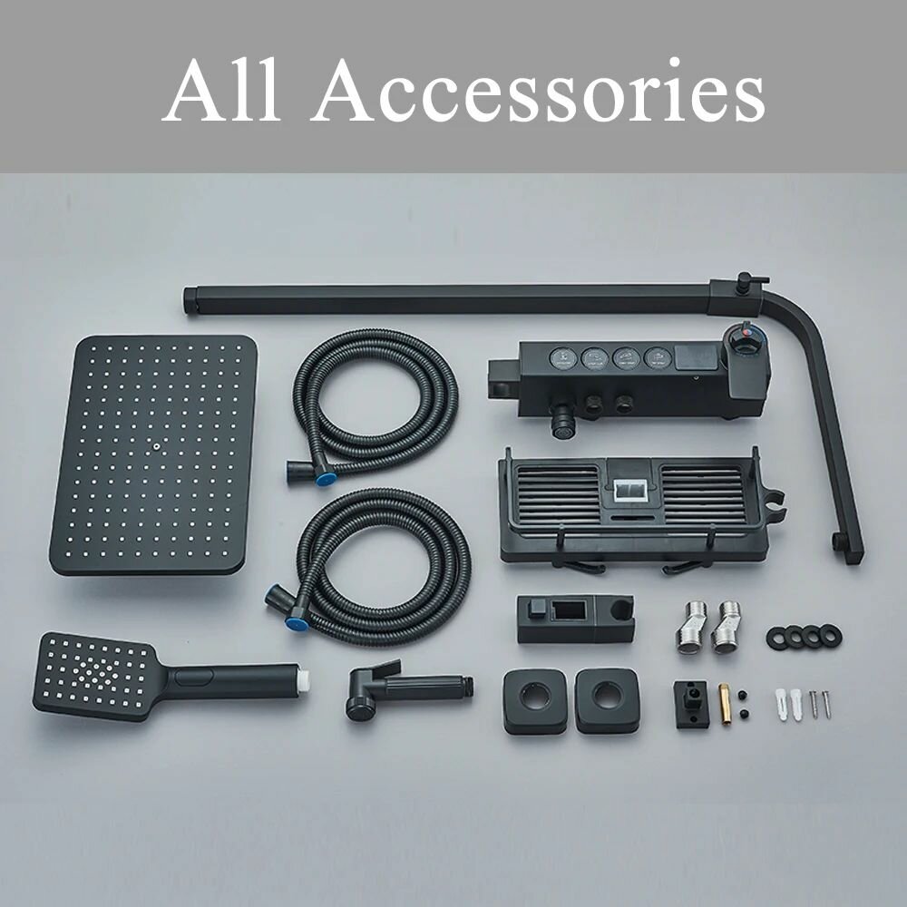 Ниже Вы можете прочитать отзывы на Душевая стойка с тропическим, ручным и санитарным душем. Смеситель с термостатом и LED дисплеем. Душевой комплект гарнитур для ванны, душевой кабины. Цвет - черный мат/золото глянец., ознакомится с подробными характеристиками, посмотреть интересные обзоры и фотографии на Душевая стойка с тропическим, ручным и санитарным душем. Смеситель с термостатом и LED дисплеем. Душевой комплект гарнитур для ванны, душевой кабины. Цвет - черный мат/золото глянец..