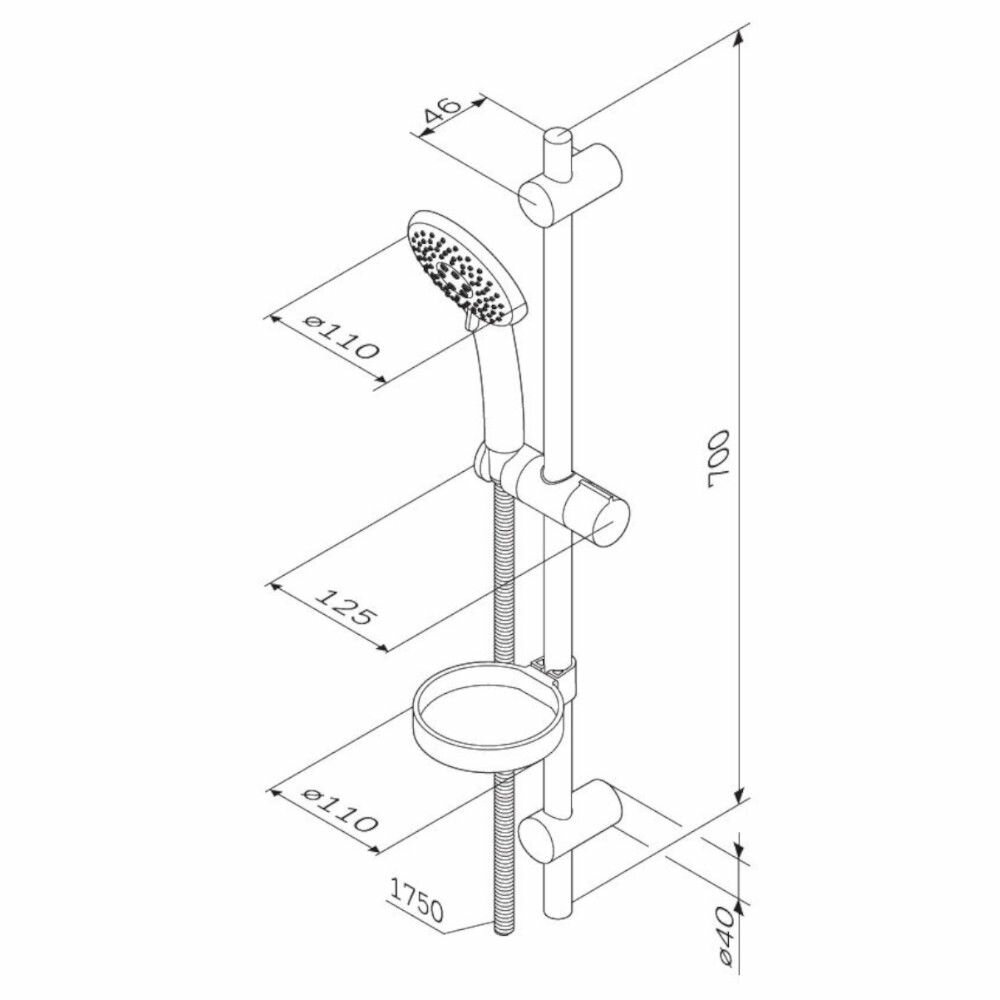 | Комплектация | держатель лейки / душевая штанга / лейка / мыльница / шланг |