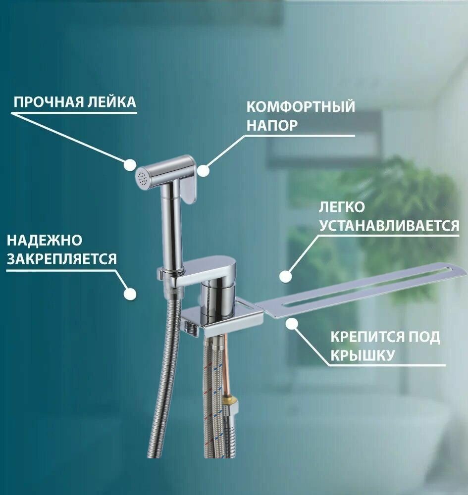 Гигиенический душ смеситель с биде приставкой для унитаза, хром интересное: