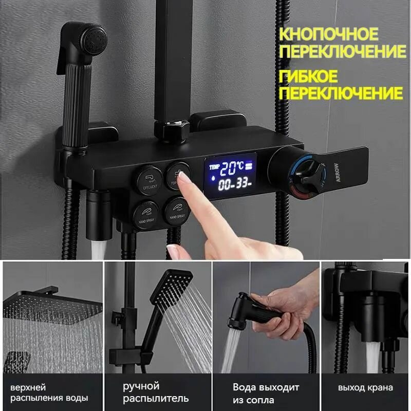 Набор смесителей для душа с 4 кнопками и цифровым дисплеем,