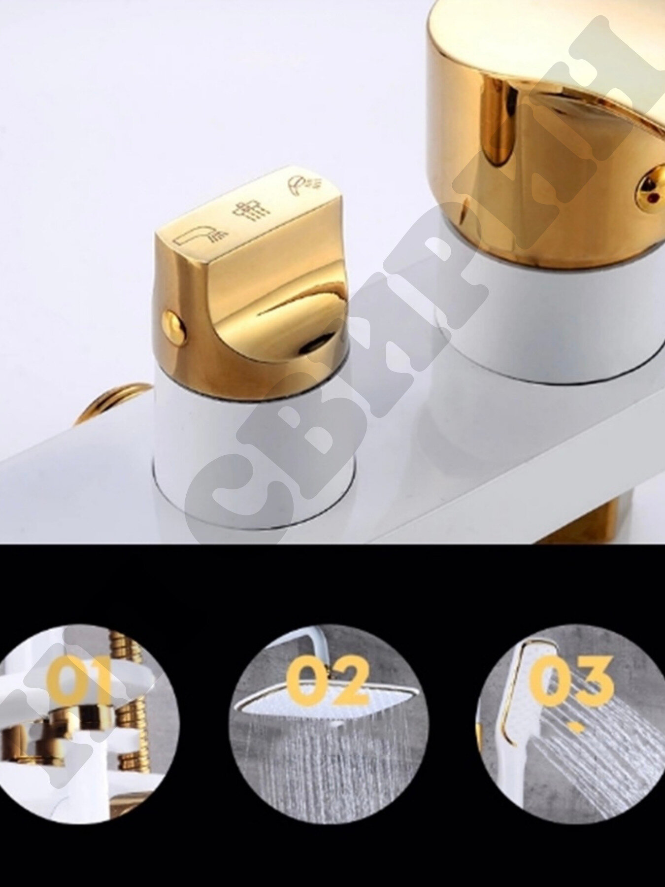 СохранитьДушевая система с тропическим душем MATRIX настенная со смесителем белый, белая душевая стойка, комплект тропический душ и смеситель золотой интересное: