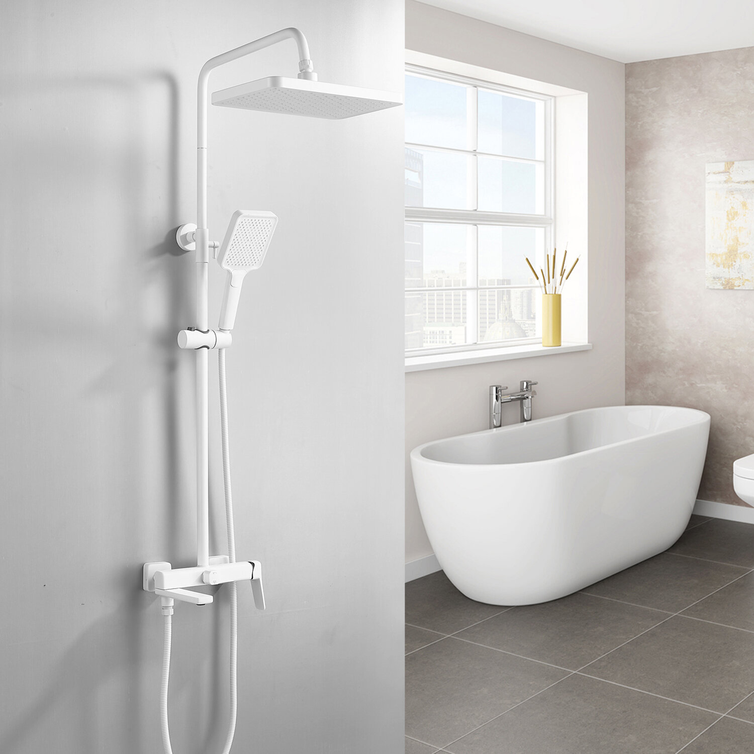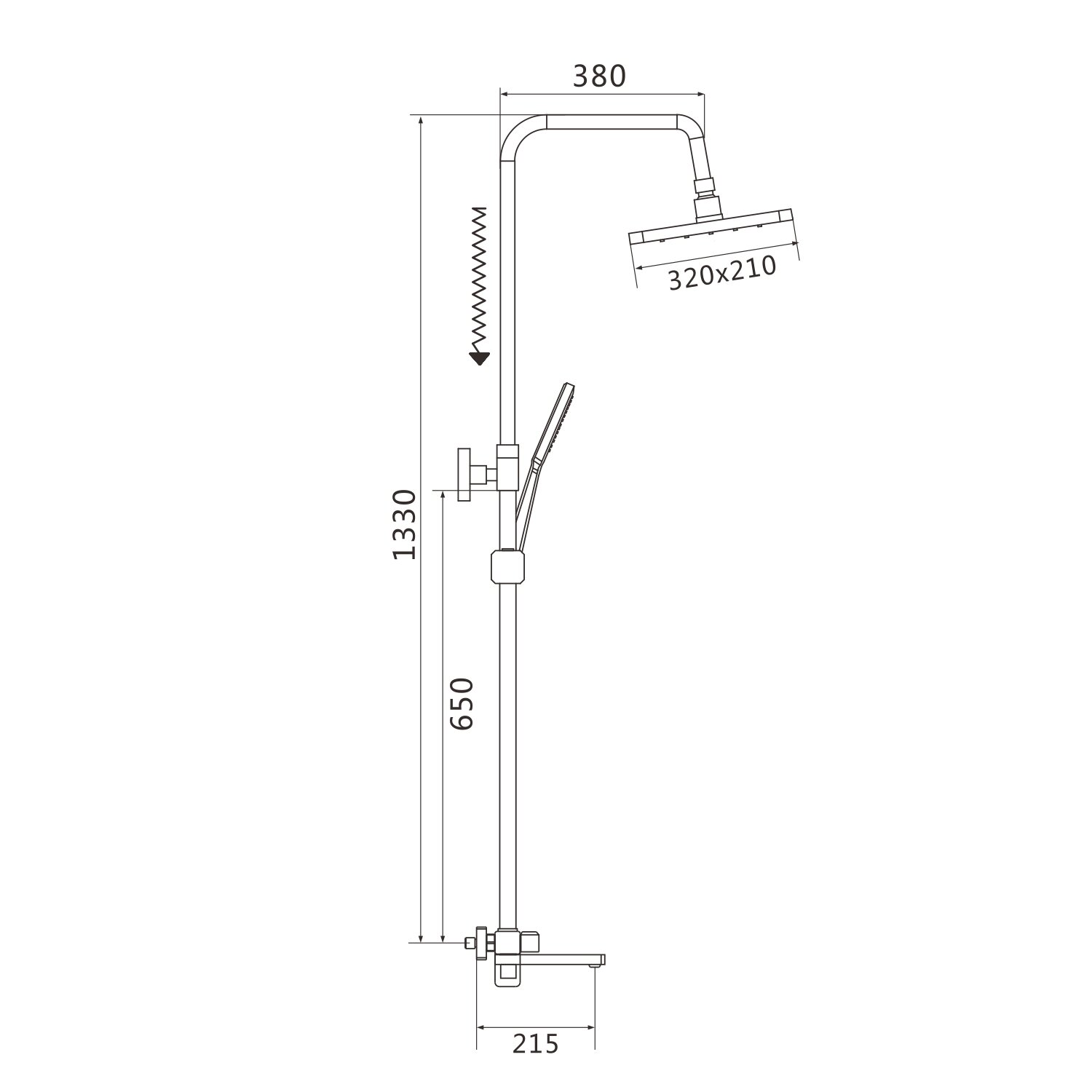 | Комплектация | верхний душ / держатель лейки / душевая штанга / кронштейн / ручной душ / Смеситель / шланг |