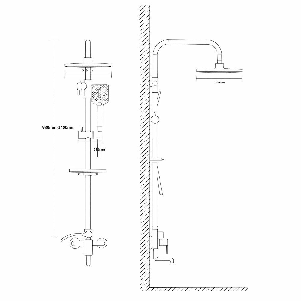 | Комплектация | верхний душ / держатель лейки / дивертор / душевая штанга / излив для набора воды / лейка / набор эксцентриков / настенный держатель / отражатель / полочка / Смеситель / шланг / эксцентрик |