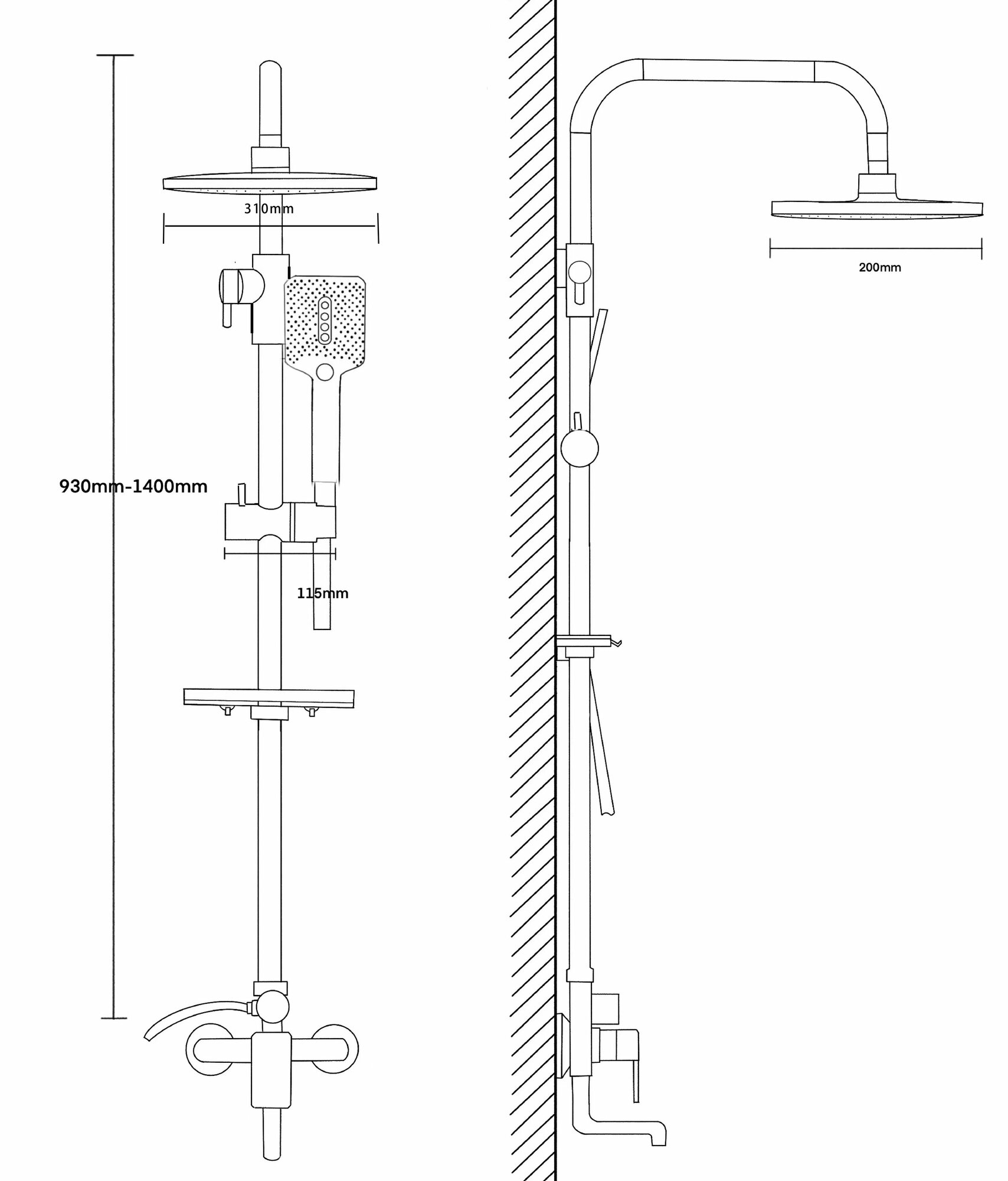 | Комплектация | верхний душ / держатель лейки / дивертор / душевая штанга / излив для набора воды / лейка / набор эксцентриков / настенный держатель / отражатель / полочка / Смеситель / шланг / эксцентрик |