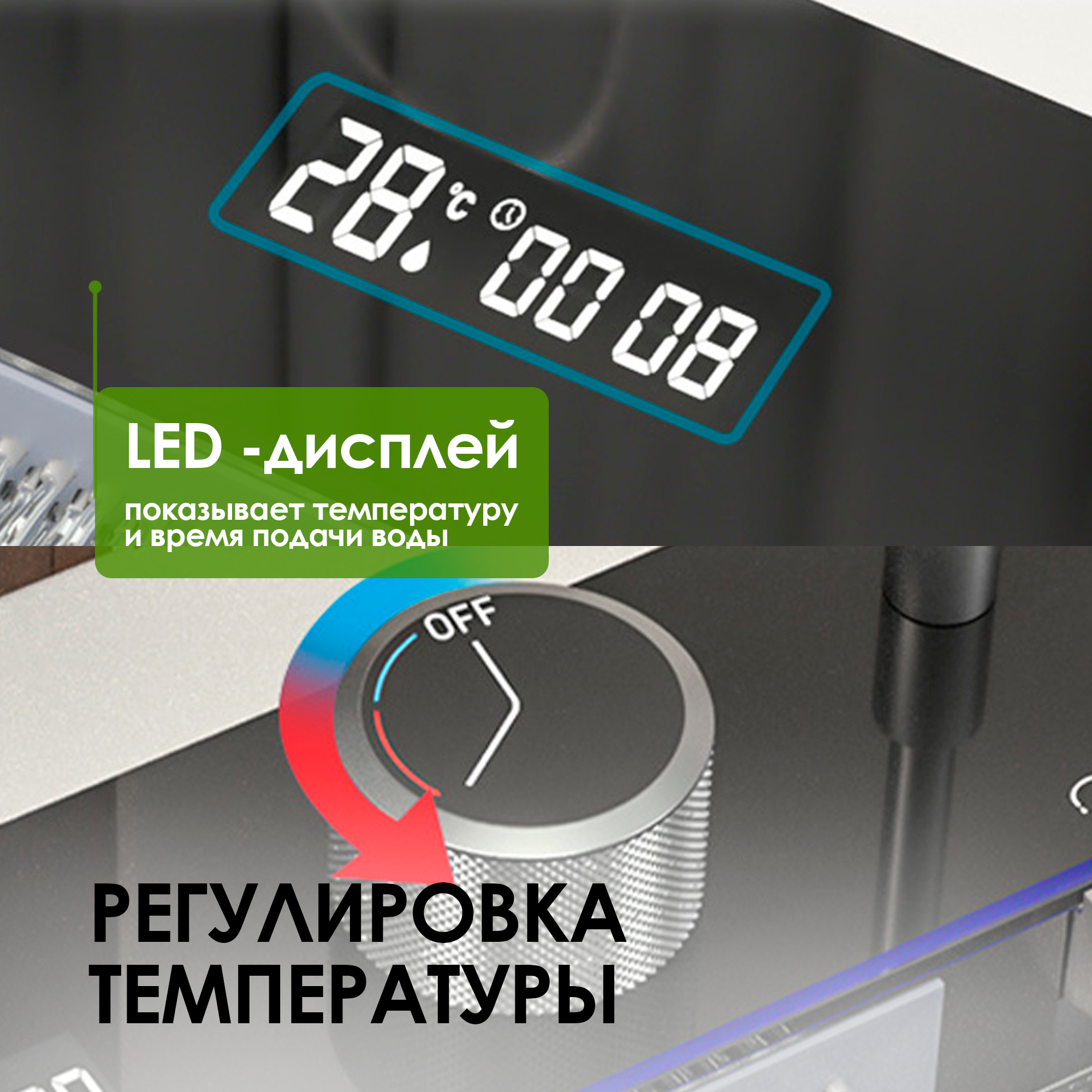 Многофункциональная умная мойка 75*46 с мойкой стаканов, краном питьевой воды, смесителем-водопадами, с подстветкой, чёрный металлик интересное: