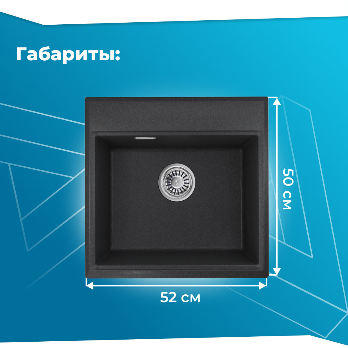 СохранитьВрезная кухонная мойка Comfort 52х50 см, кварцевая, квадратная, цвет Черный, модель 5202 интересное: