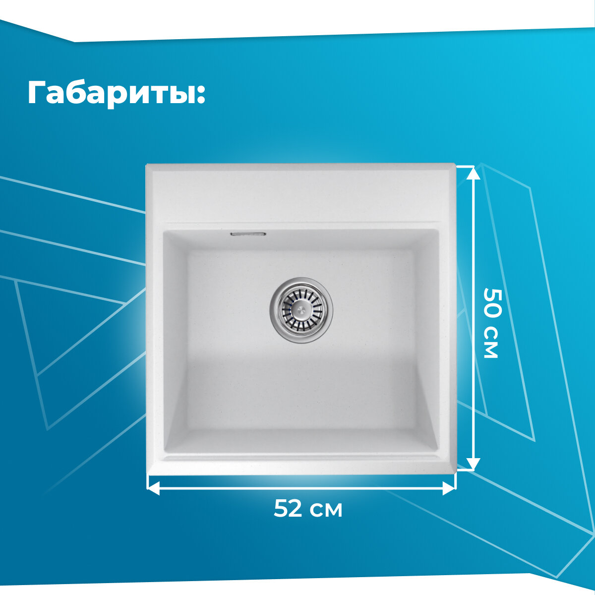 СохранитьВрезная кухонная мойка Comfort 52х50 см, кварцевая, квадратная, цвет Арктик, модель 5202 интересное: