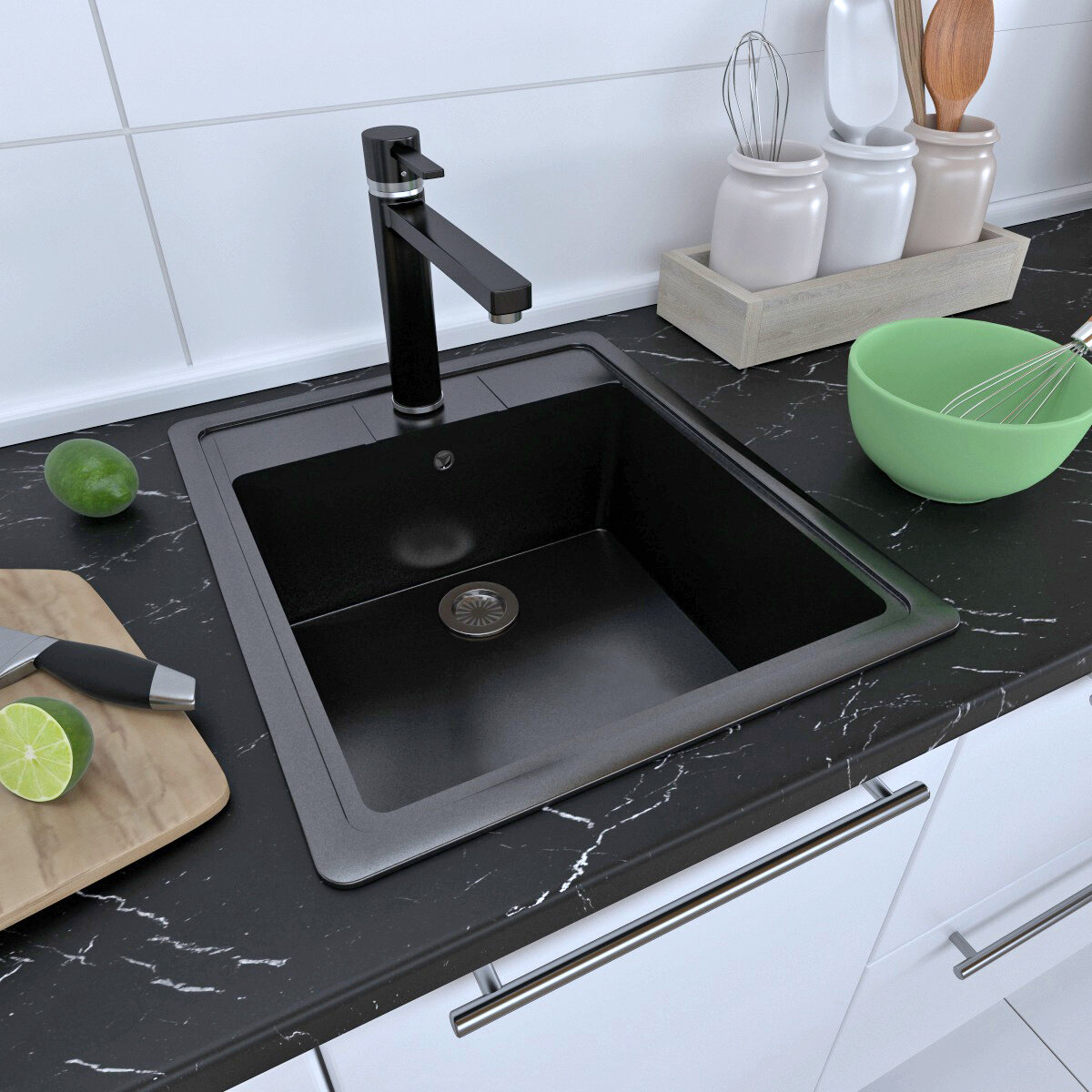 Мойка для кухни мраморная GranAlliance Черная матовая прямоугольная 500х440 без сифона интересное:
