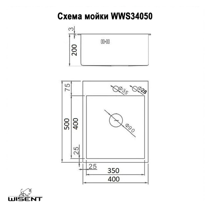 Купить Комплект кухонная мойка из нержавеющей стали WISENT 4050 (40х50см) с коландером