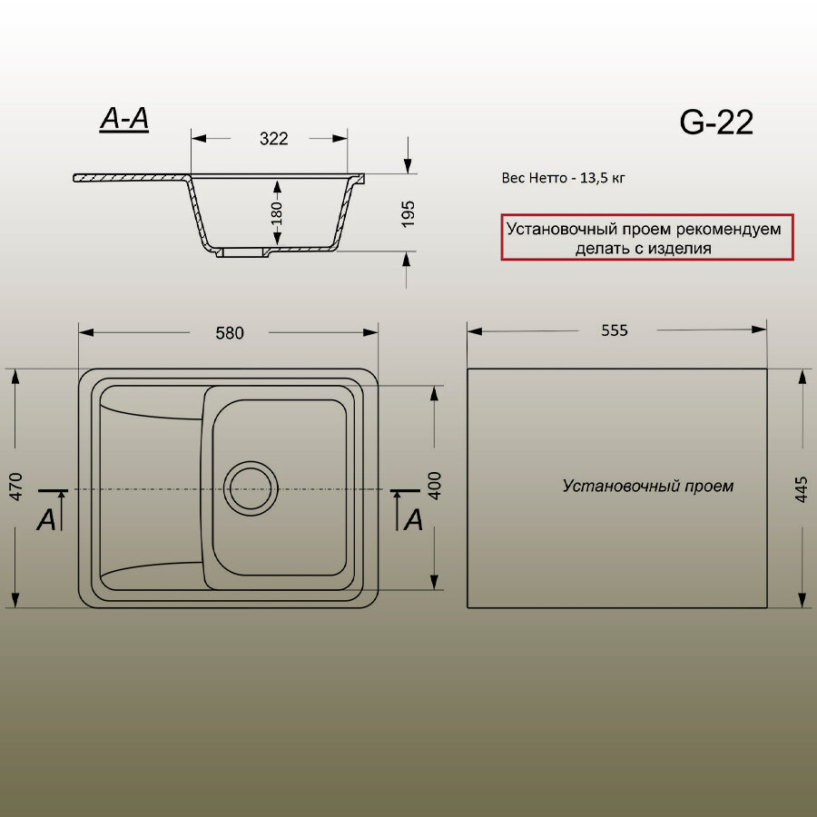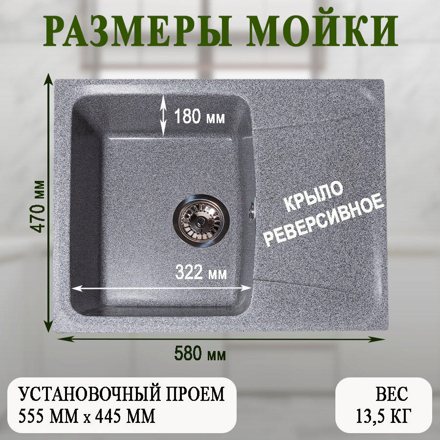 Кухонная мойка мраморная GranAlliance G-22 Темно-серая матовая 575*470*195 без сифона интересное: