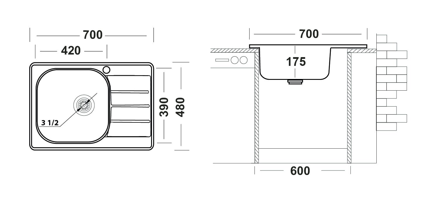 | Ширина мойки | 70 см |