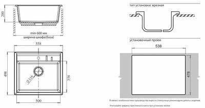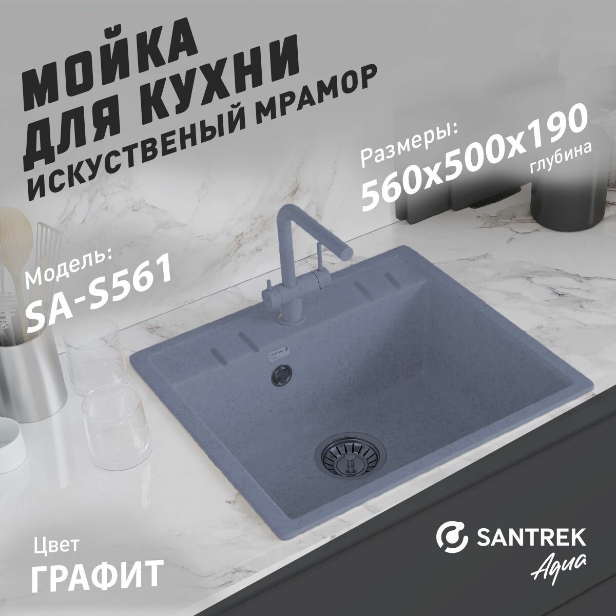 Мойка SANTREK AQUA SQUARE SA-S561 1 чаша 560*500 мм (графит-309) (без сифона) интересное: