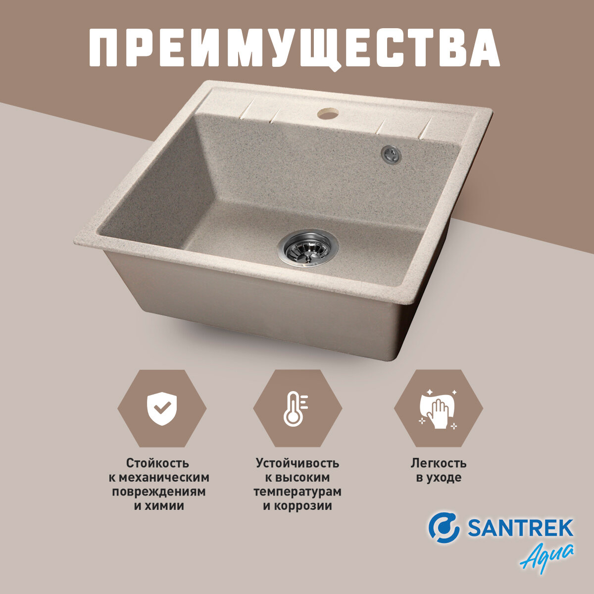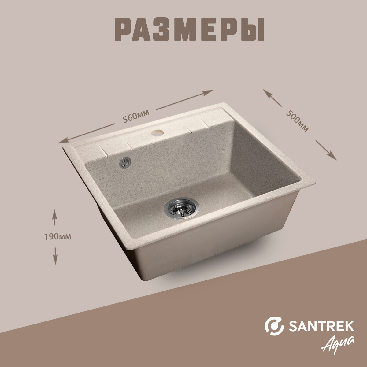 Мойка SANTREK AQUA SQUARE SA-S561 1 чаша 560*500 мм (песок-302) (без сифона)