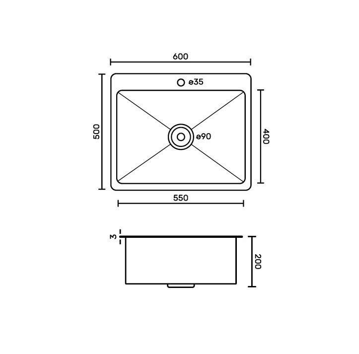 Кухонная мойка врезная из нержавеющей стали Fabia Profi 50503D 50x50 см декор, Сатин матовая текстурная поверхность