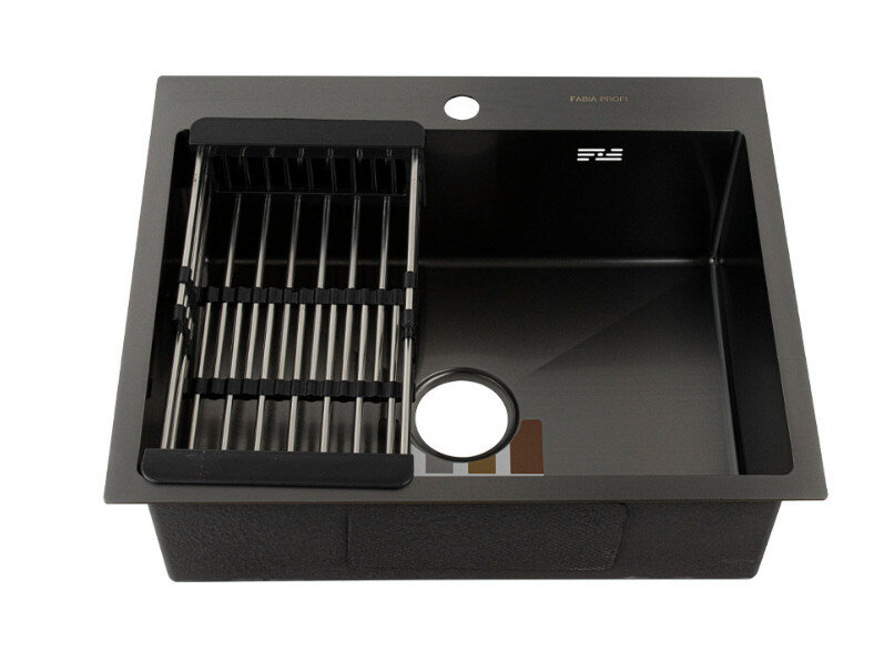 Кухонная мойка врезная из нержавеющей стали Fabia Profi 60503DG 60x50 см Глубина 20см, Декор Графит матовая текстурная поверхность, сифон и коландер в комплекте