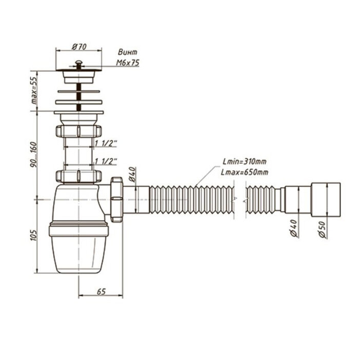 | Конструкция сифона | бутылочный |