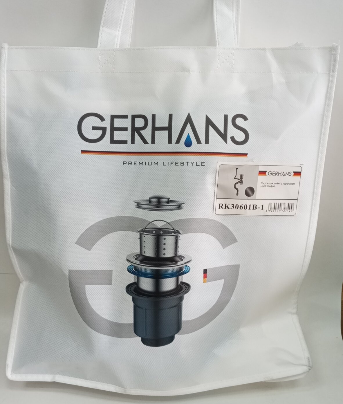 Сифон для мойки Gerhans K30601B-1 графит с переливом интересное: