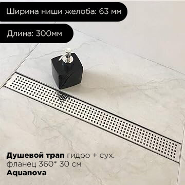 Купить Душевой трап - лоток с горизонтальным выпуском решетка в квадратик с поворотный фланец 360*С 63*300мм с сухим и гидрозатвором Aquanova