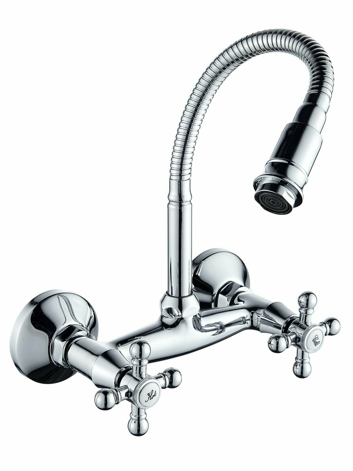 Купить Смеситель на кухню настенный Эверест B47-333 с гибким изливом, керамические кран-буксы, хром