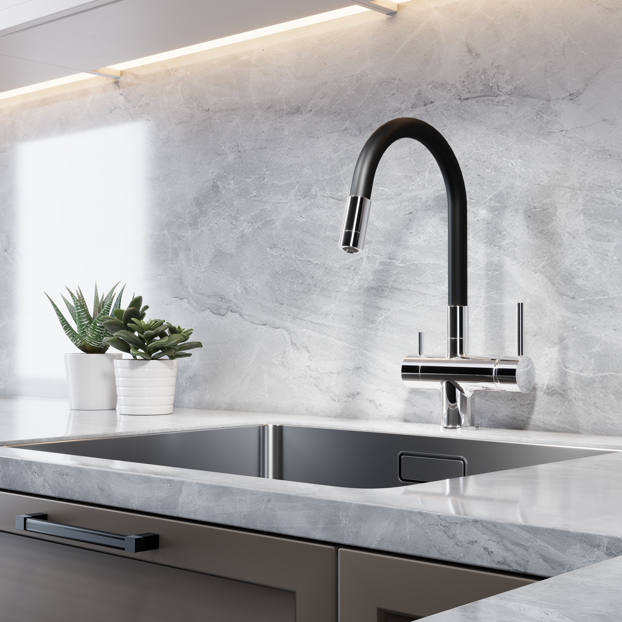 Смеситель для кухни с гибким изливом с подключением к фильтру черный, арт. EL_K102 total black