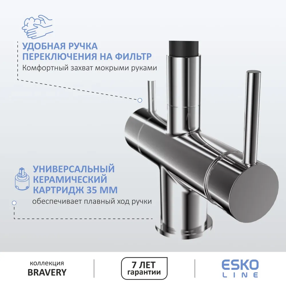ESKO Line. Смеситель для кухни с гибким изливом и фильтром для воды интересное: