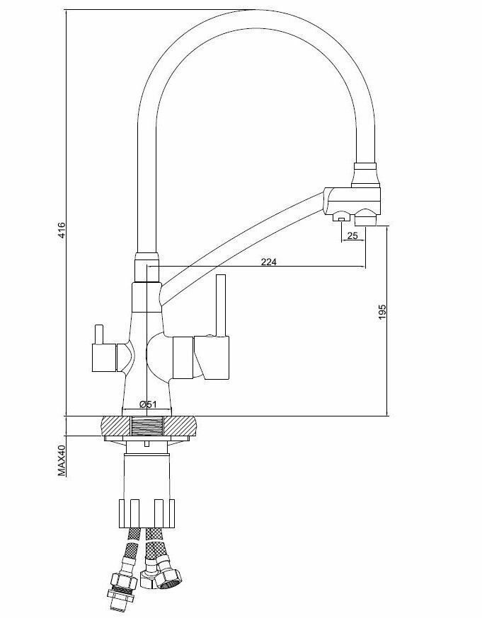 ESKO Line. Смеситель для кухни с гибким изливом и фильтром для воды