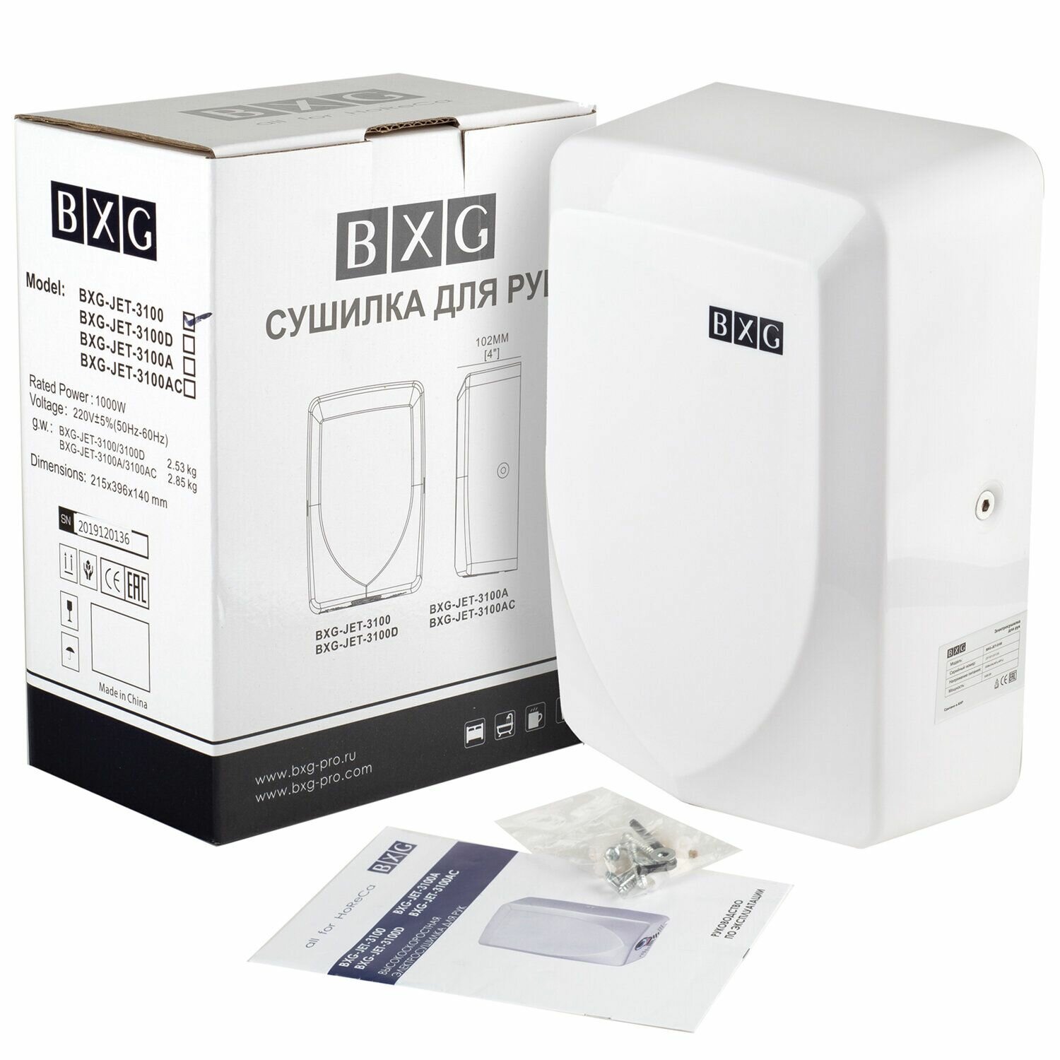 Купить Сушилка для рук BXG JET-3100A, сенсорная, 0,6 кВт, обеззараживающая, пластик белый