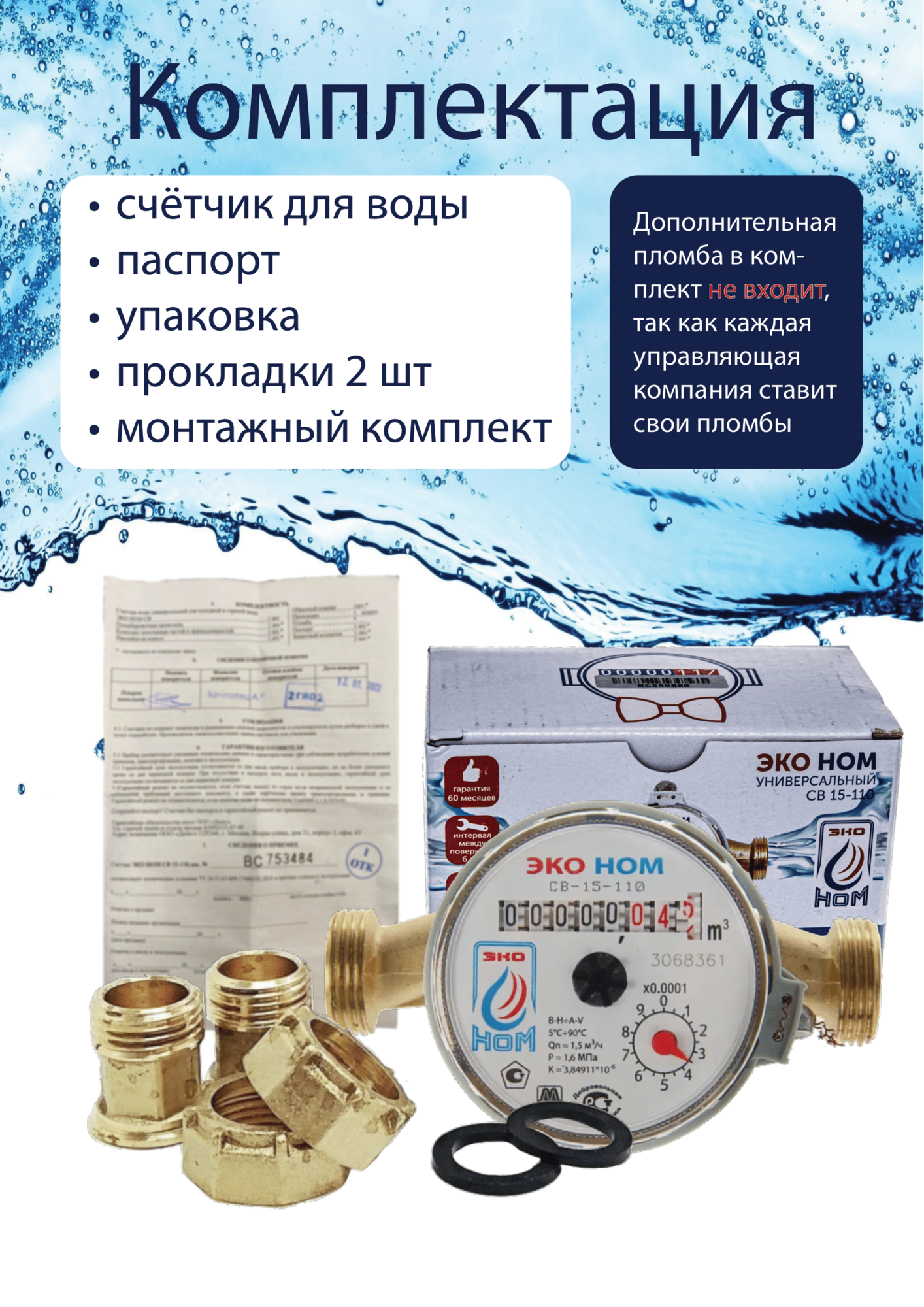 Счетчик воды Эконом универсальный СВ-15 с монтажным комплектом интересное: