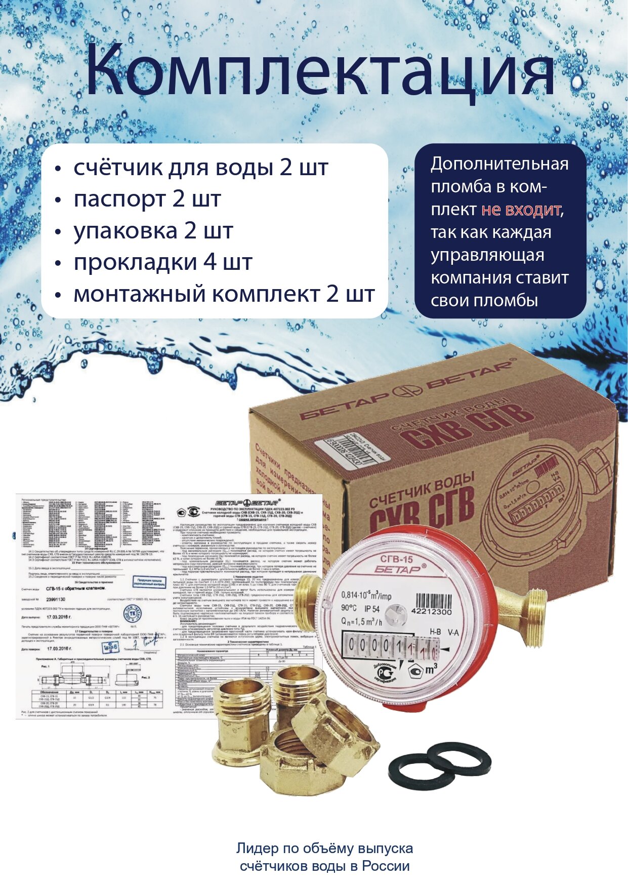 Комплект счетчиков воды Бетар СГВ-15 и СХВ-15, с монтажными комплектоми интересное: